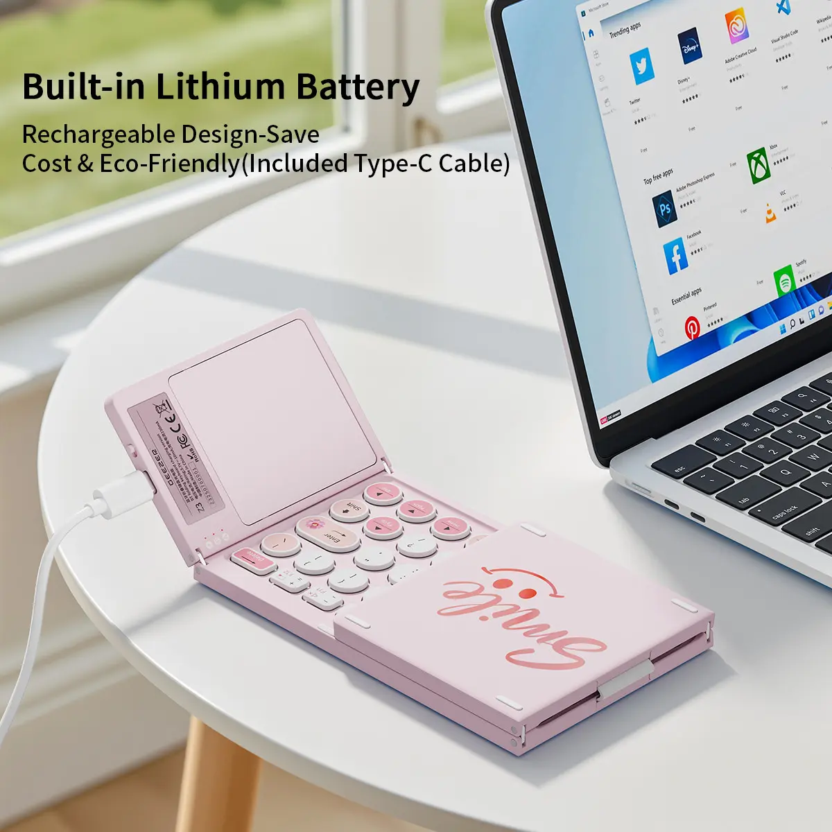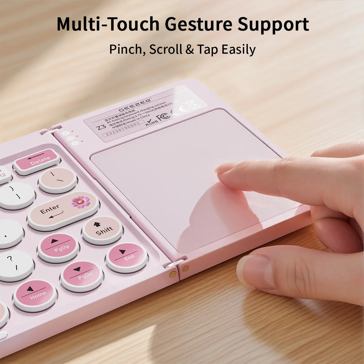 MOFii 1 Pc Z3 Pink Foldable Bluetooth Keyboard with Touchpad, Rechargeable, Cute iPad Tablet Essential for Girls, US Qwerty