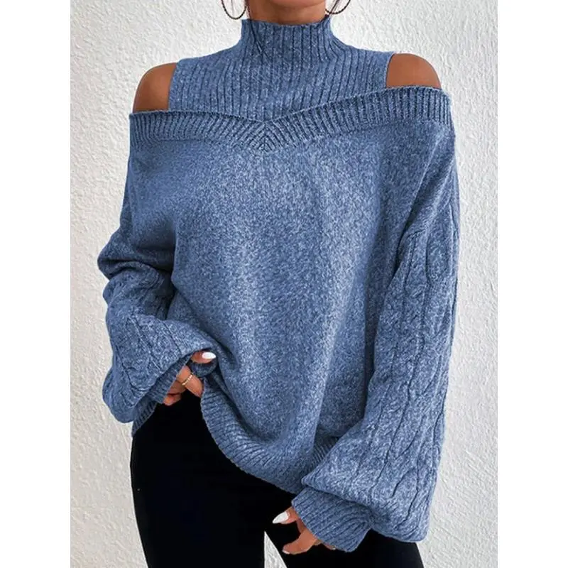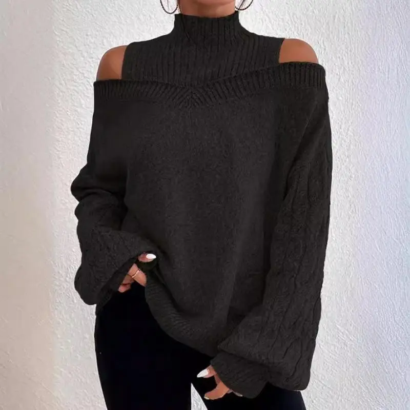 2025 Off-shoulder Sweater New Loose Half Turtleneck Lantern Sleeve Sweater For Women