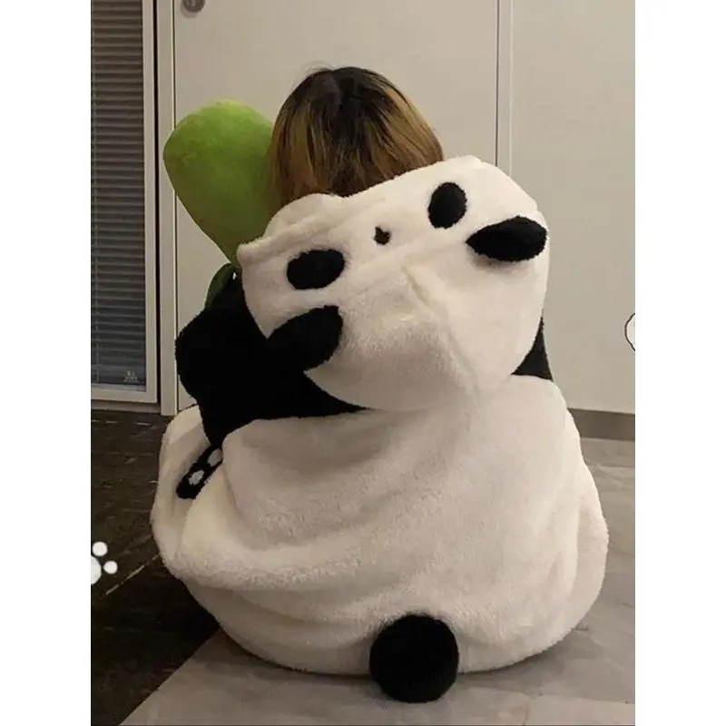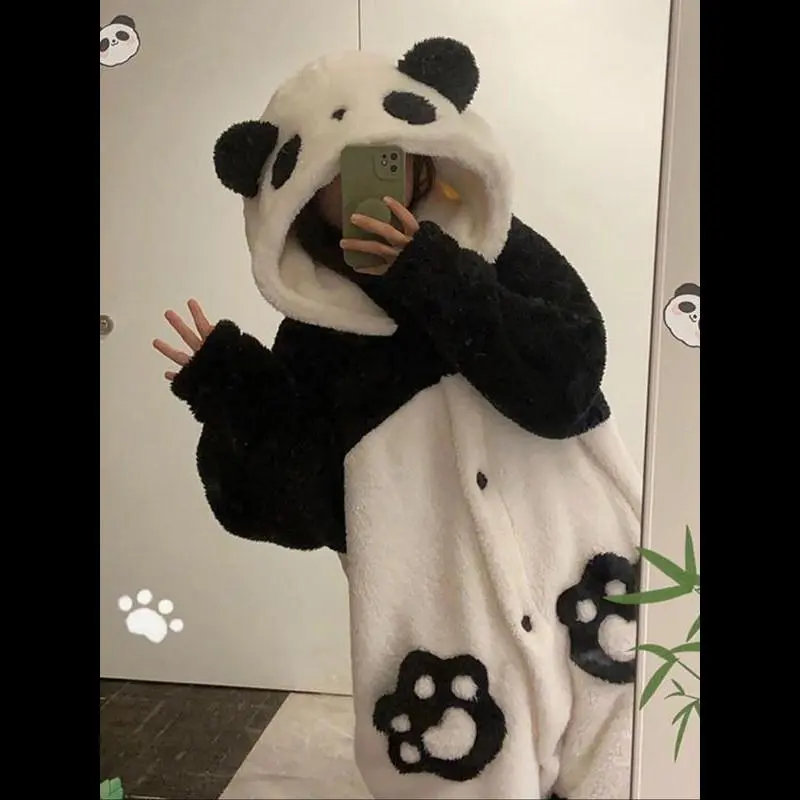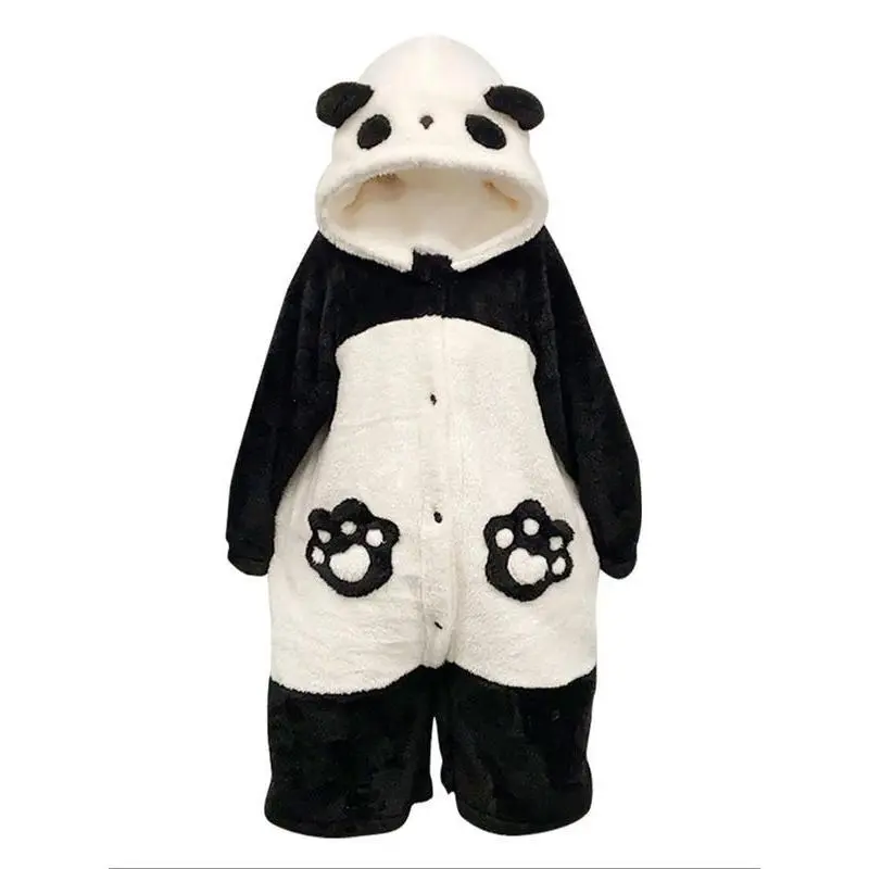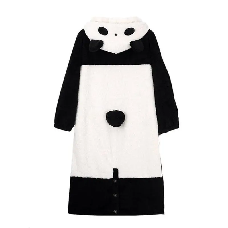 1pcs Women's Winter Cartoon Panda Pajamas Set, Flannel TV Blanket Loungewear, Long Thick Couple Sleepwear Gift for Thanksgiving Christmas