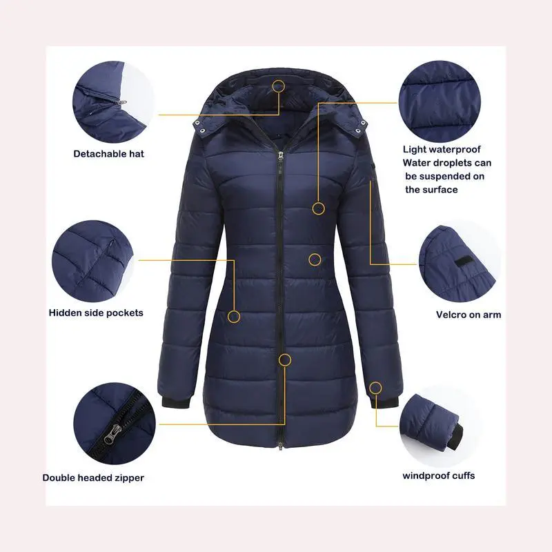 Women's autumn and winter long warm coat, detachable hood, windproof warm down jacket, autumn and winter warm cotton jacket, windproof waterproof jacket