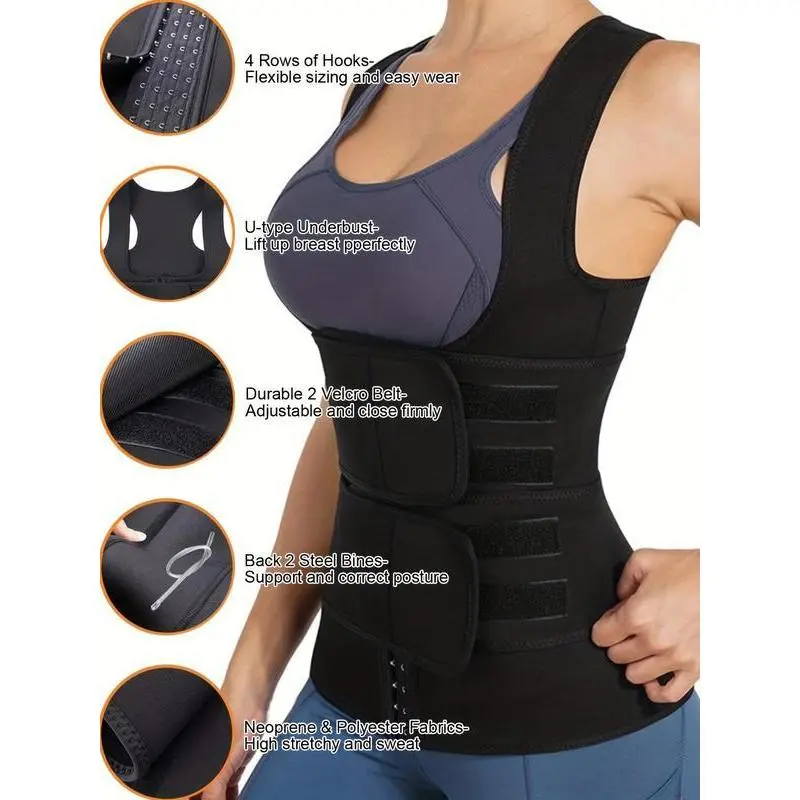 SHAPSHE Waist Shapewear Corset for Women Tummy Control Sport Workout Body Shaper Vest for Women Gym Zipper and Hooks