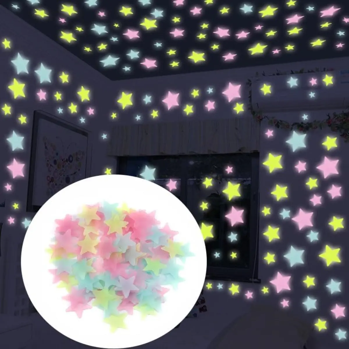5. Glow-in-the-dark star wall stickers, 5 pieces, colorful fluorescent plastic stickers, size 3 cm/1.18 inches, ceiling decoration glow-in-the-dark self-adhesive fluorescent wall stickers, colors randomly matched.