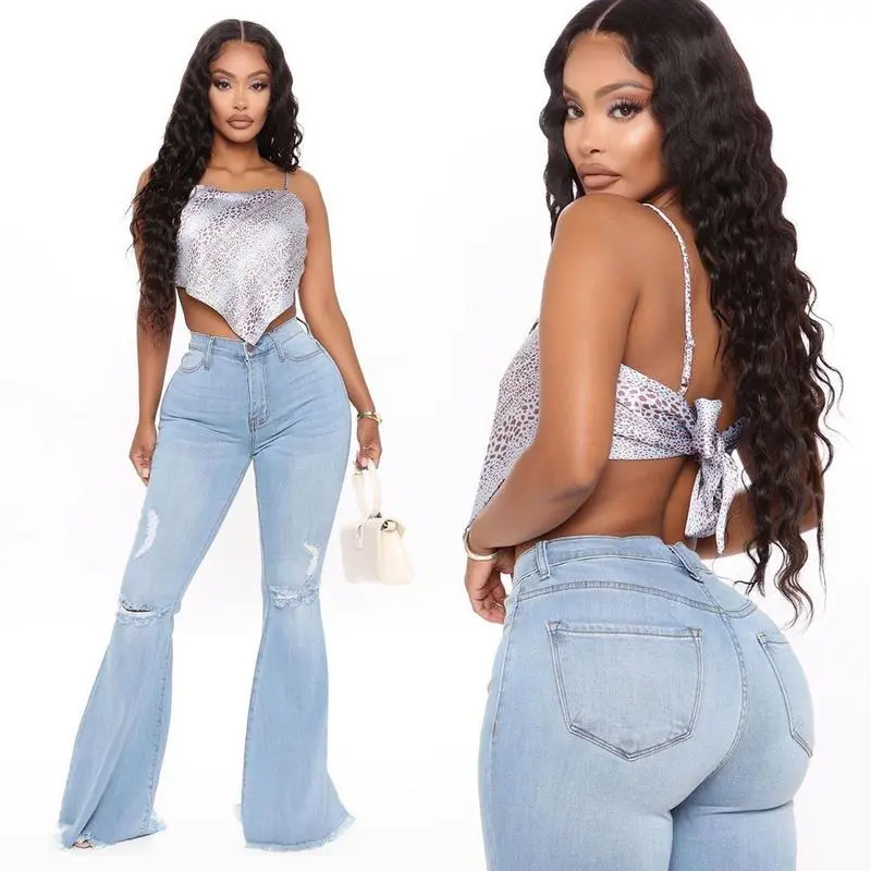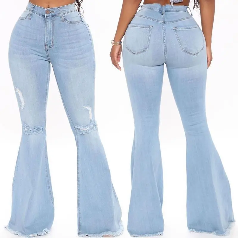 Women sFlareJeansStrenchyElasticHighWaistedBellBottomBootcutDenimPants