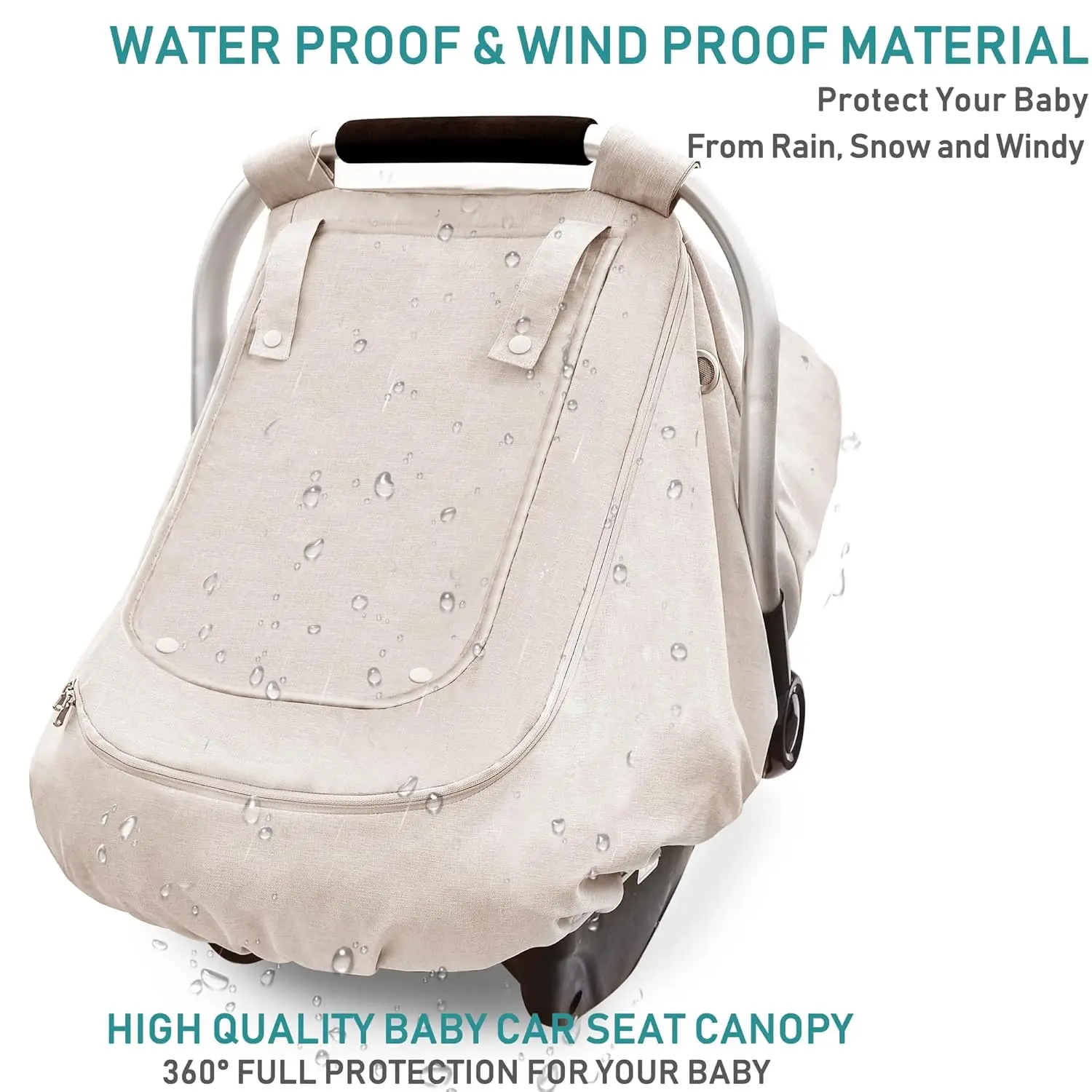Waterproof Baby Car Seat Cover, Patented Cold Weather Carseat Cover for Babies,Infant Car Seat Cover Canopy for Boy Girls, Keeps Babies Warm and Cozy (Beige)