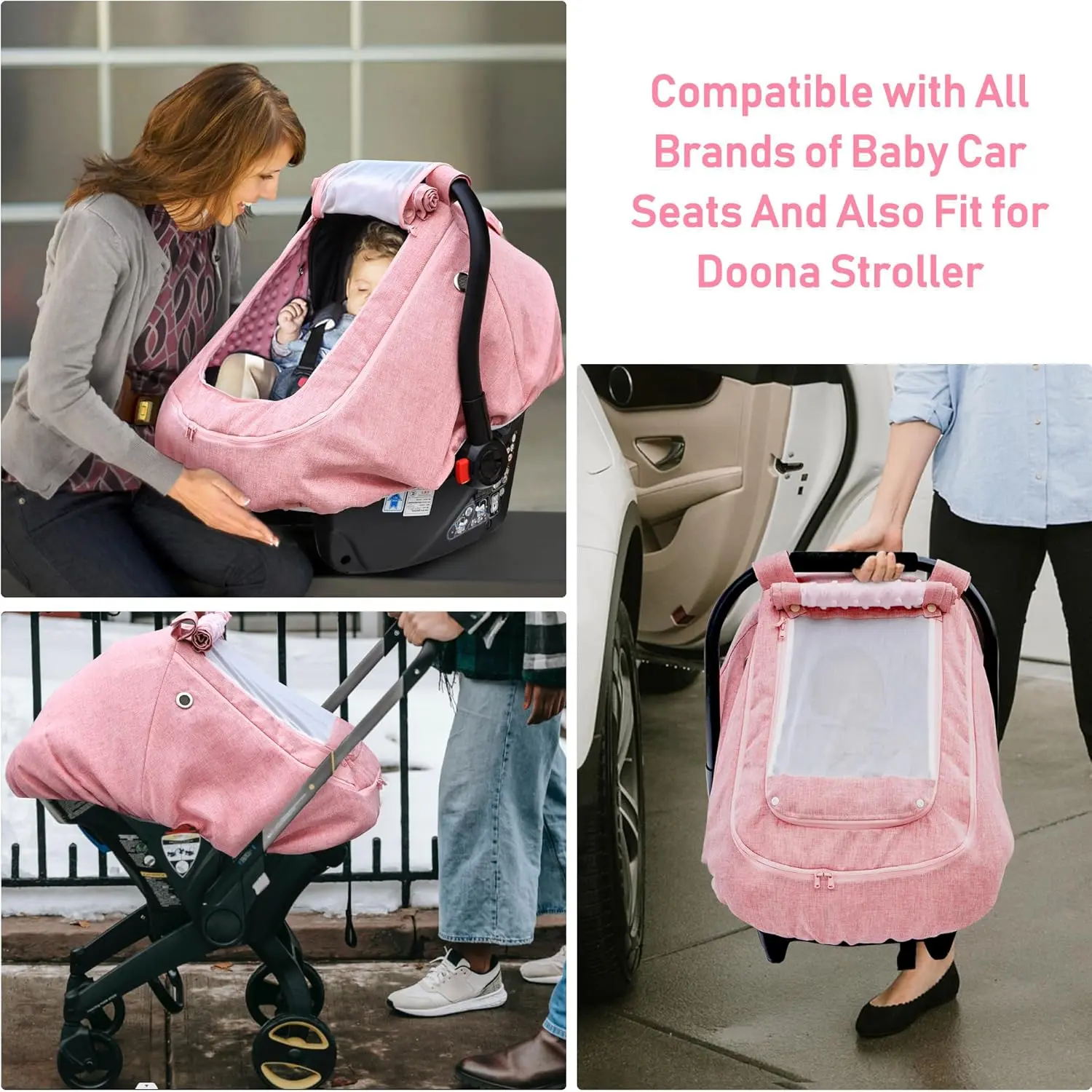 5. Waterproof Baby Car Seat Cover, Patented Pink Cold Weather Carseat Cover for Babies,Infant Car Seat Cover Canopy for Girls, Windproof Car Seat Canopy for Girls, Keeps Babies Warm and Cozy