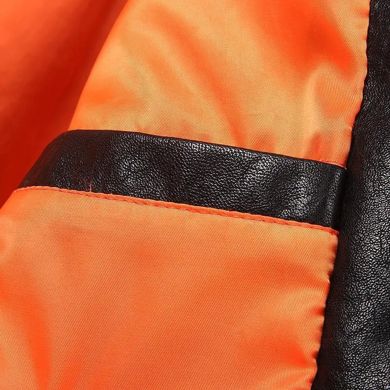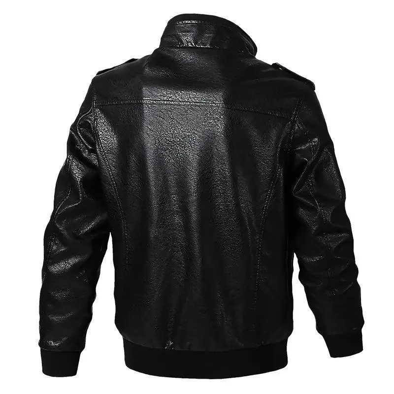 New autumn and winter men's wool lined leather motorcycle jacket, fashionable young baseball style leather jacket, embroidered jacket men's jacket jacket top long sleeved off-road motorcycle tight zipper casual