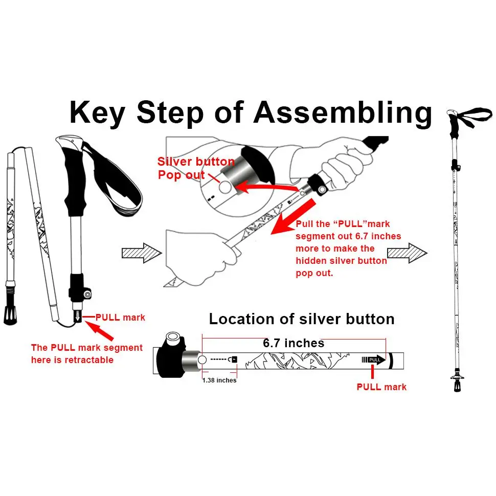 After having pulled the hidden silver button out(Important), you will find it very easy to operate.If it is the first time to use the collapsible trekking pole, please watch the videos under the picture or assemble steps on detail page and instructions which come with the product before use it.