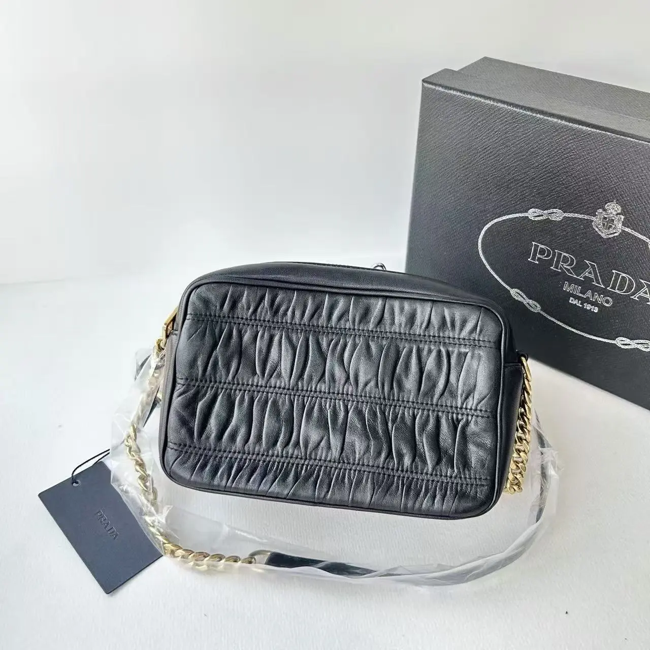 Pre-owned PRADA Calfskin Crossbody Bags Gaufre Camera Black LNL0407