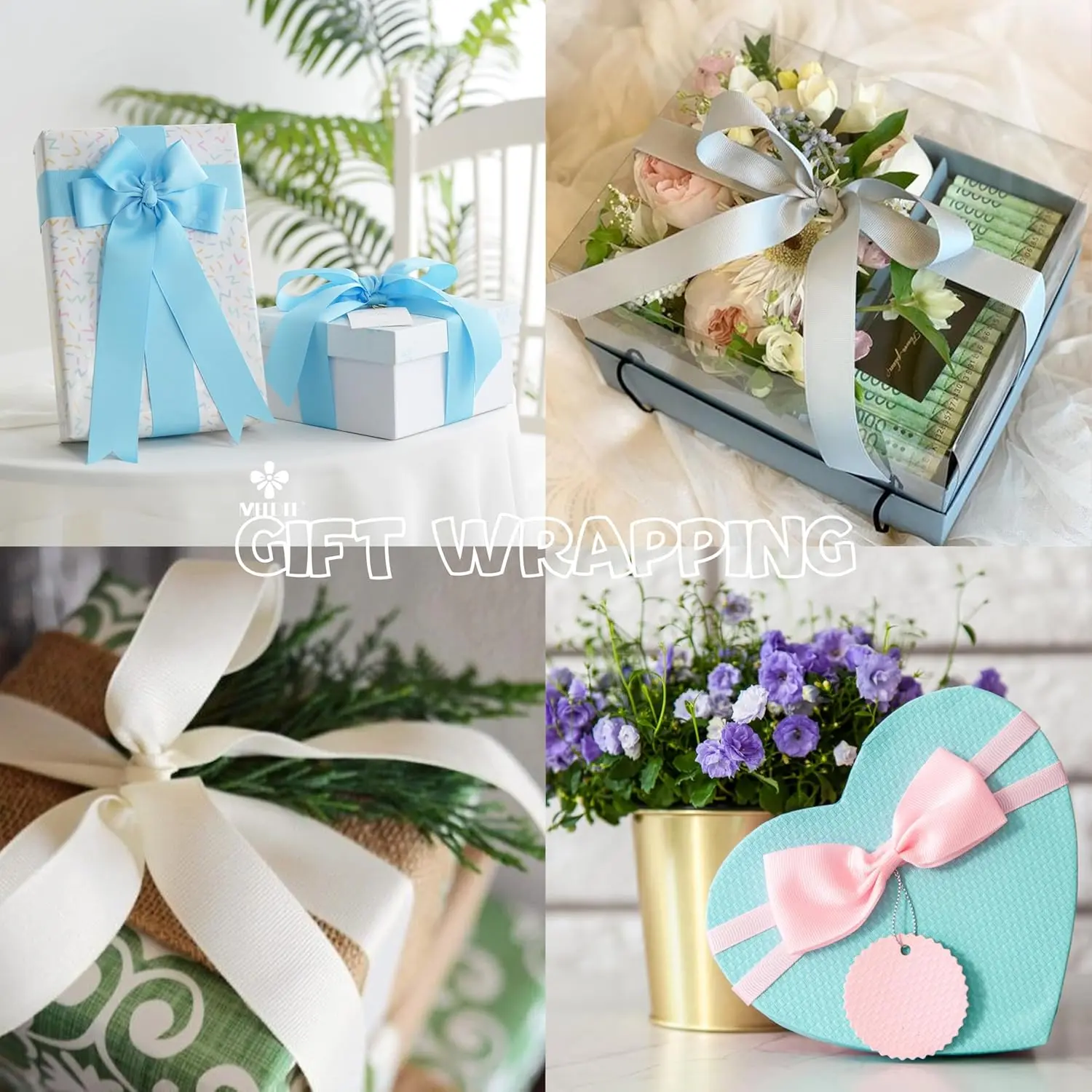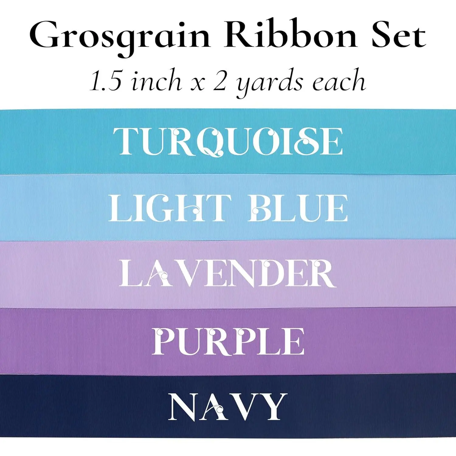 Asst.comes in : 1-1/2 inch wide, 20 different colors, 2 yards each roll by the spool, total 40 yards/setHigh Quality: These ribbons are washable fabric that won't shrink or fade - perfect for both crafts and sewing projects.Made from polyester material that is strong and long-lasting making it no matter how you use or tie them, they will look gorgeousClassic Colors: 20 most popular vibrant colors like white, pink, coral, hot pink, dusty rose, red, orange, yellow, apple green, emerald green, gray, blue, turquoise, lavender, purple, tan, brown, hunter green, navy and black.With these representative colors, you'll have the enough ribbon for any occasion, from wedding to party, bridal shower to baby shower, hotel to home decoration!Well Package: Ribbons all pack in 20 rolls and keep in a plastic bag, easy to use and prevents it from dirty.Multi-color solid fabric ribbon edge finish stitched, beautiful, anti-wrinkle and flexible touch on both sides.You can use it for garment manufacturers, decorators and craftsmen, can be used for branding your product packaging, making clothing, bow, tie, hair ornaments, gift packaging, corset lacing, cake pop bows, flower arrangements and wedding, party decorations.Wide Application: Beautiful, soft and elegant grosgrain ribbons are wonderful for decorating clothes, costumes and accessories.Can be used to headbands, hair bows, hair clips, embroidery, baby item, doll clothes, patch work, gift baskets, garlands, ribbon crafts, bottle decorations, baking crafts, invitation embellishments, pet accessories, card making, photo board, flower ball, scrapbooking, perfectly accent any DIY project.....You will find endless uses to decorate about any event.