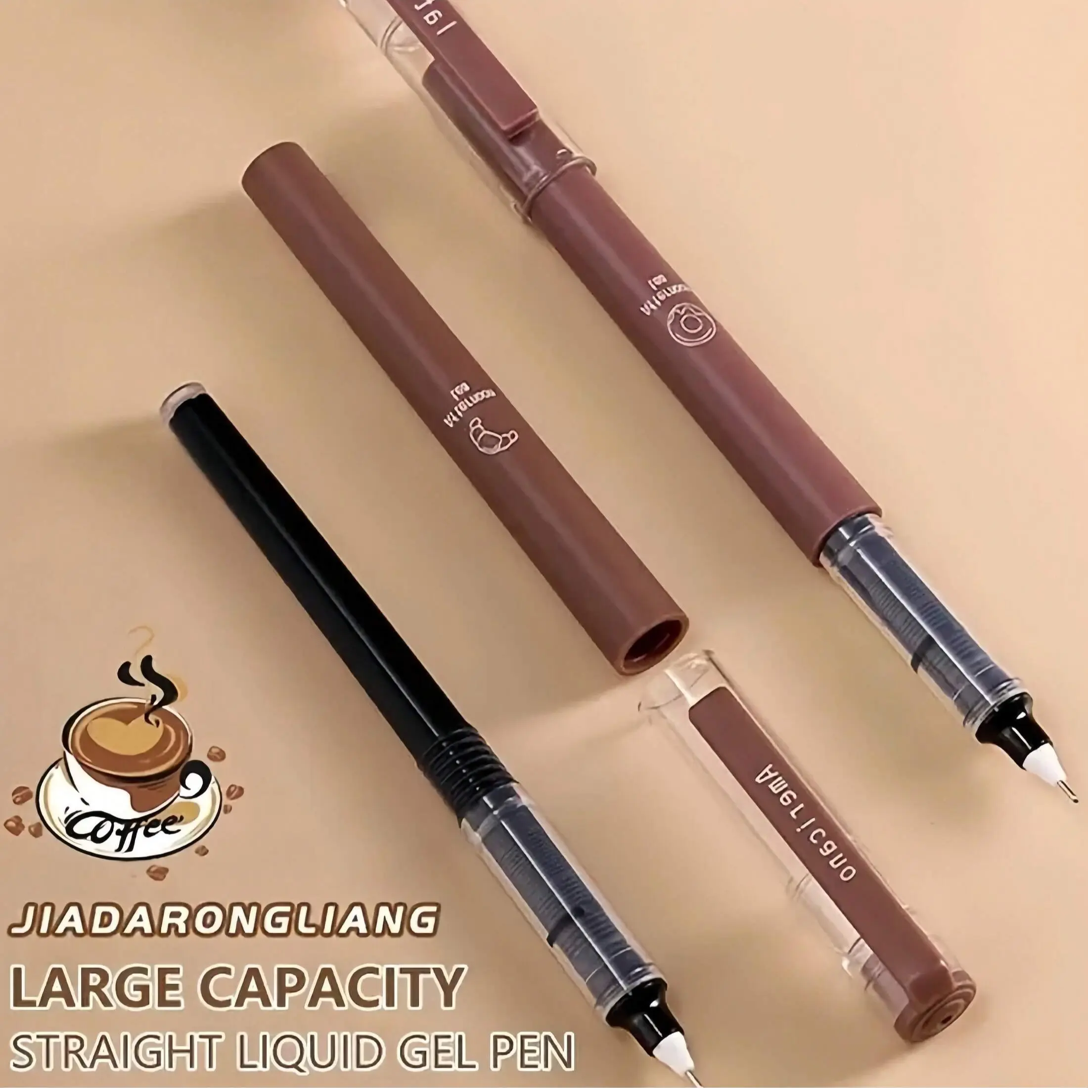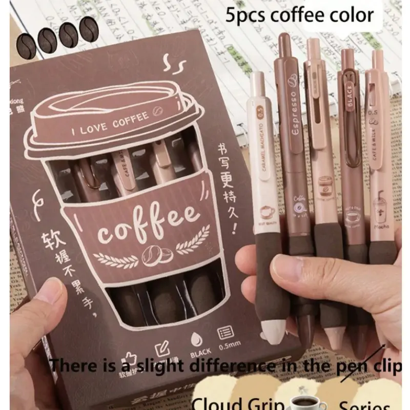 6pcs Coffee Theme Liquid Quick-Drying Ink Gel Pens, No smear Soft Touch Pens for Note taking Drawing School Office Supplies