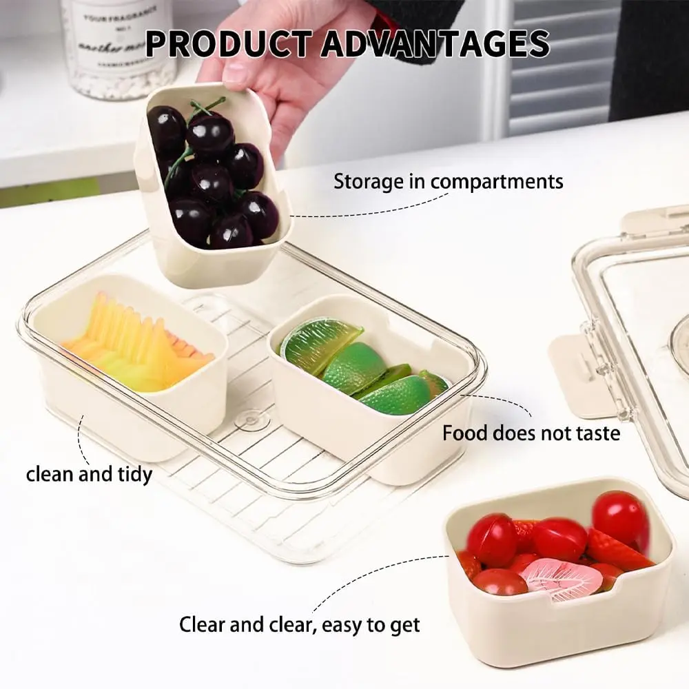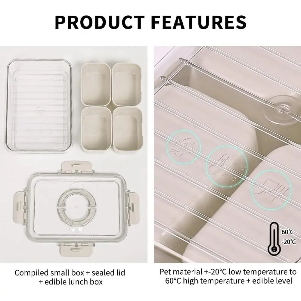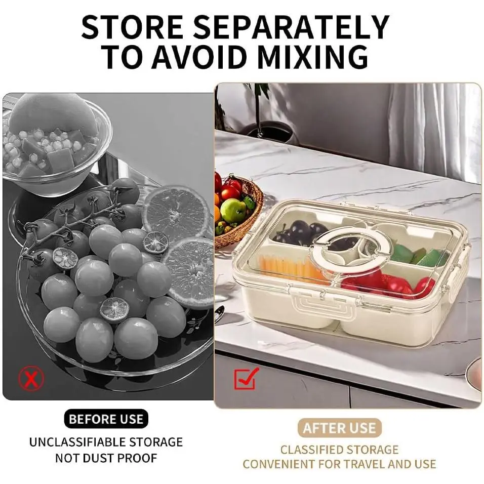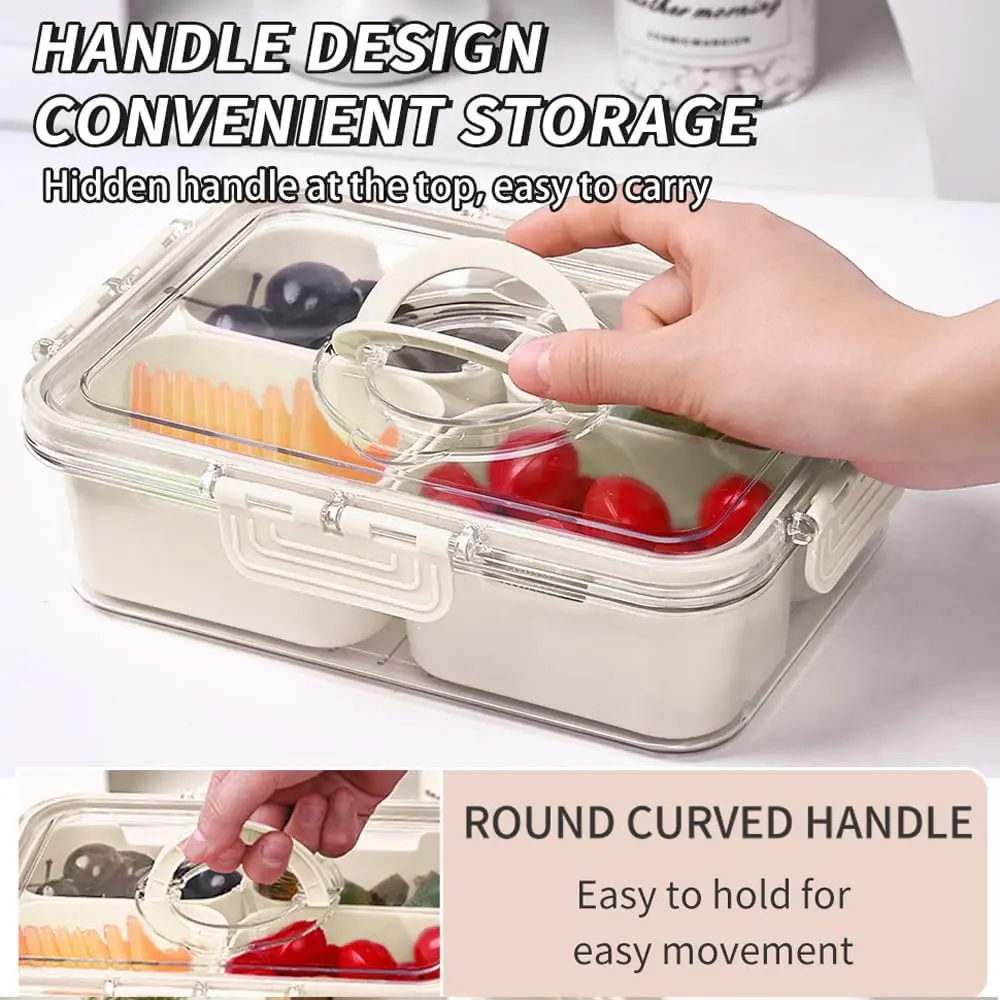 Small Snackle Box Container with Lid, 4 Compartment Travel Snack Container with Handle, Divided Serving Tray with Lid, Portable Snack Box for Candy, Fruits, Nuts, Snacks, Veggies