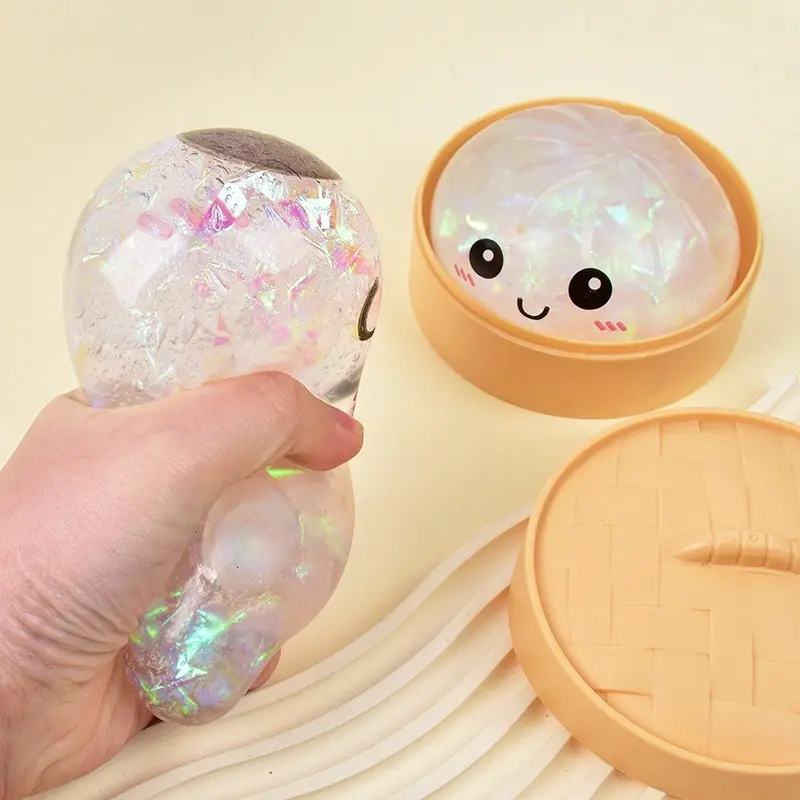 Cute Glitter Dumpling Stress Toy — a smiley-face squeezable sensory toy that’s fun for both kids and adults. Perfect for relaxation and desktop play, it also makes a great gift and a fun icebreaker for socializing and gatherings.