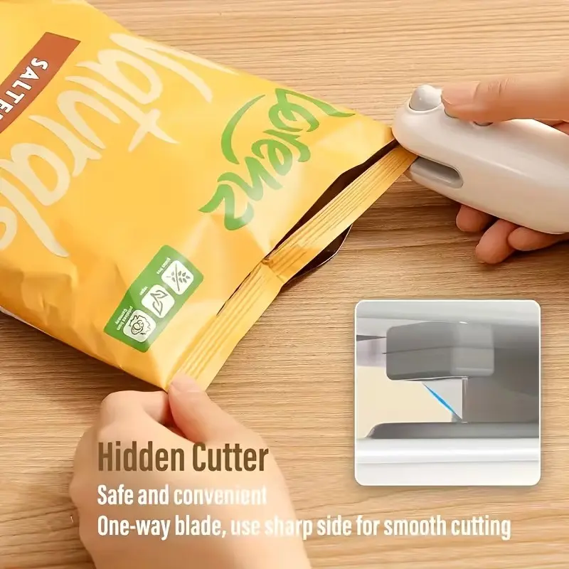 1PCS Mini Bag Sealer Rechargeable Handheld Magnetic Heat Sealer 2 In 1 With Cutter Food Freshness Snack Sealing Portable Home Kitchen Sealing Tool