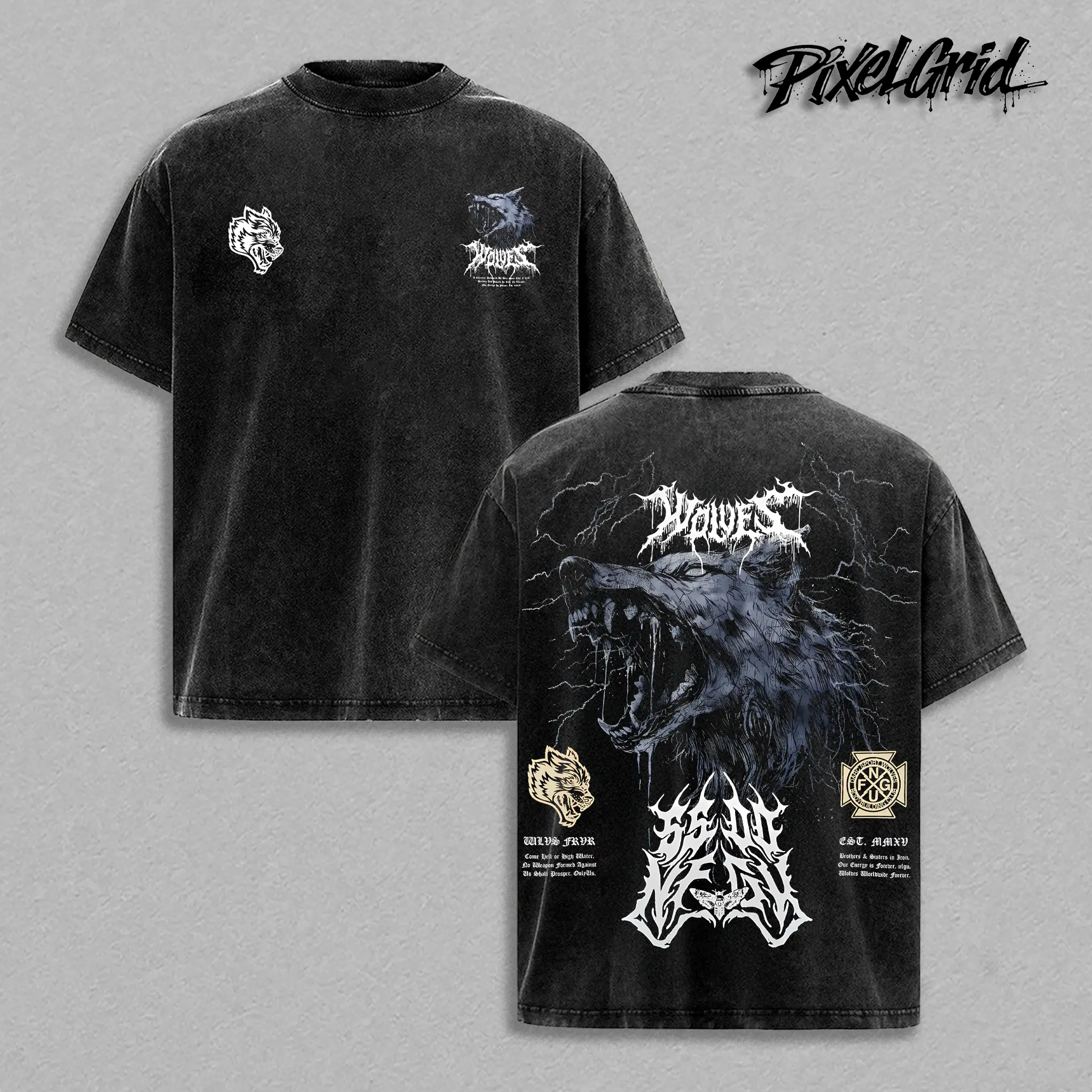 Wolves Forever Darc.Sport Graphic Tees, Gothic Wolf Gym Streetwear Shirt, Vintage Washed Oversized Heavy Cotton T-Shirt, Unisex Graphic Streetwear Fit, Dark Metal Game Apparel, Casual Crewneck Tee
