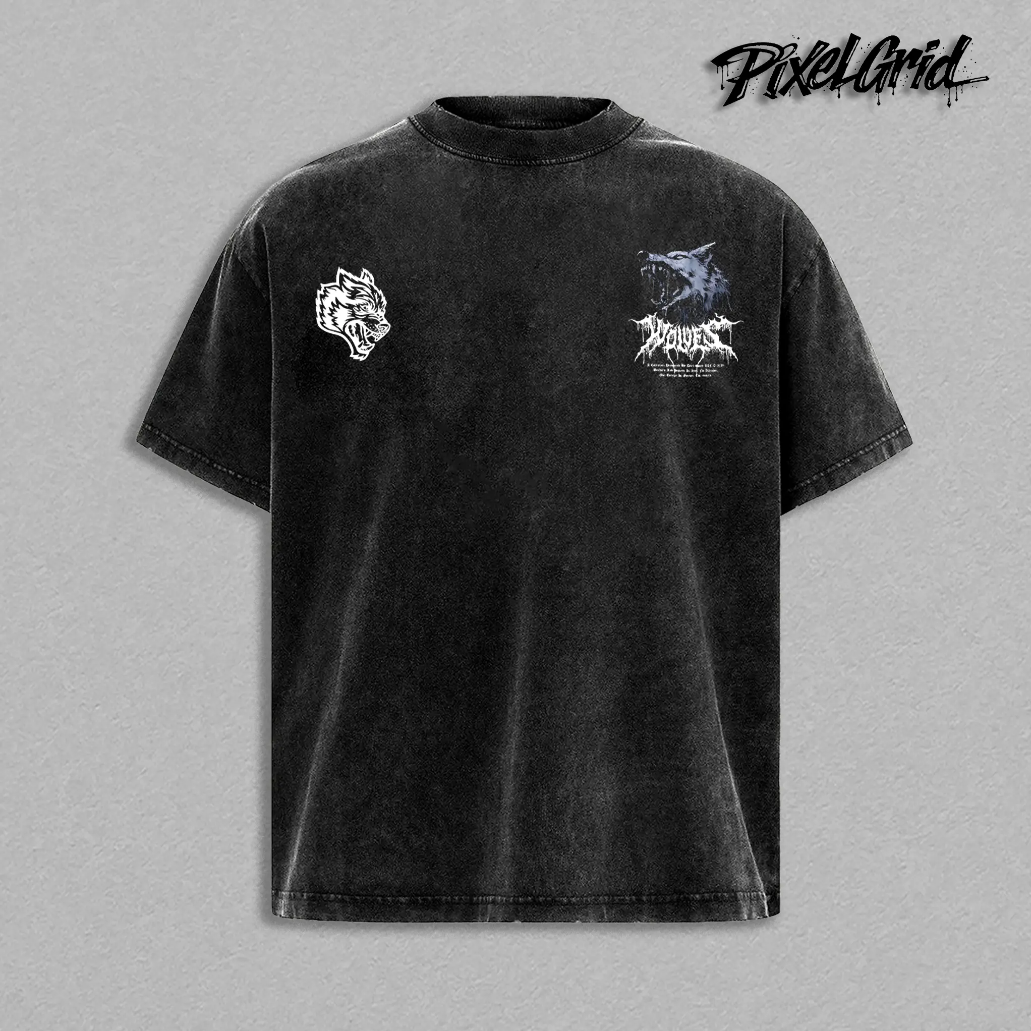 5. Wolves Forever Darc.Sport Graphic Tees, Gothic Wolf Gym Streetwear Shirt, Vintage Washed Oversized Heavy Cotton T-Shirt, Unisex Graphic Streetwear Fit, Dark Metal Game Apparel, Casual Crewneck Tee