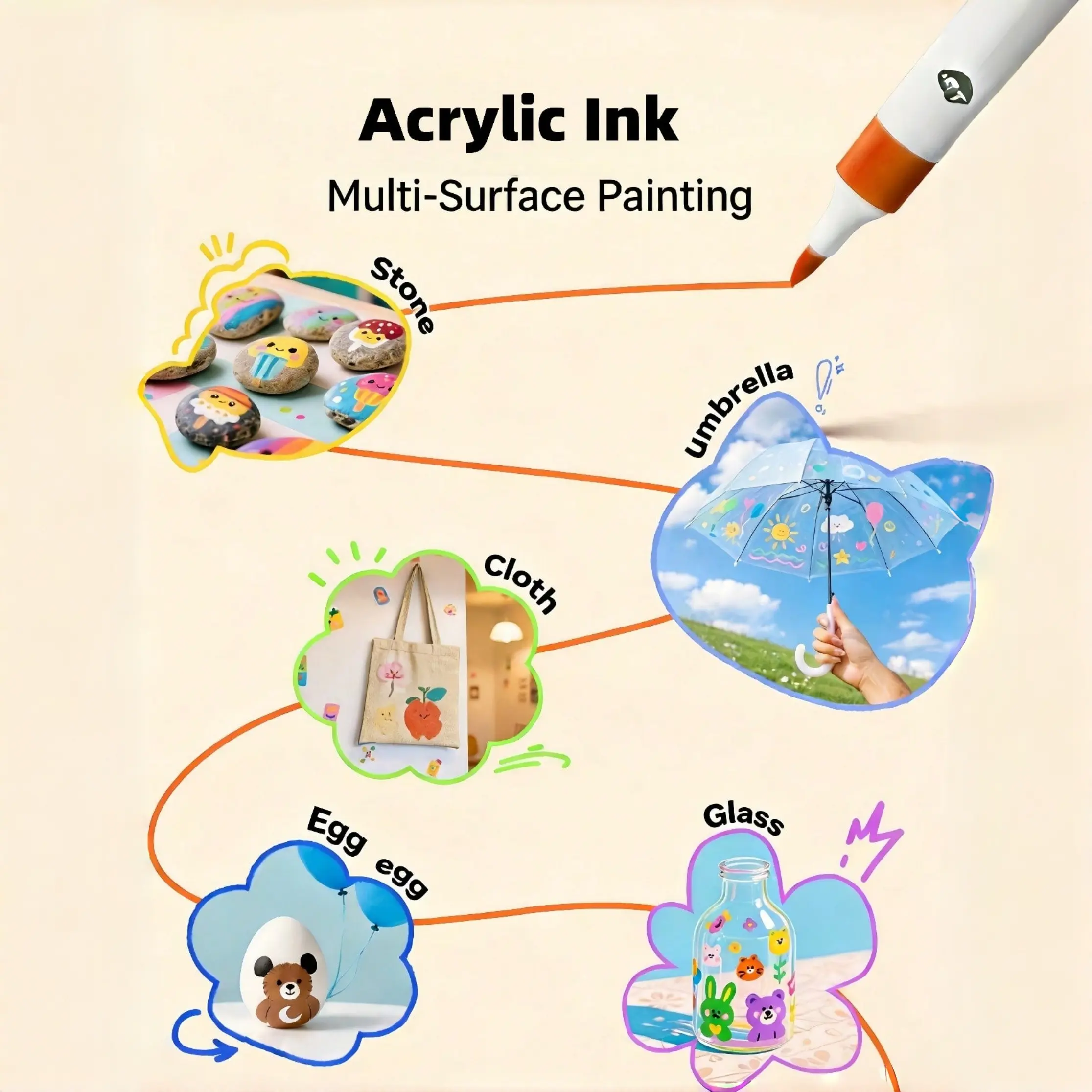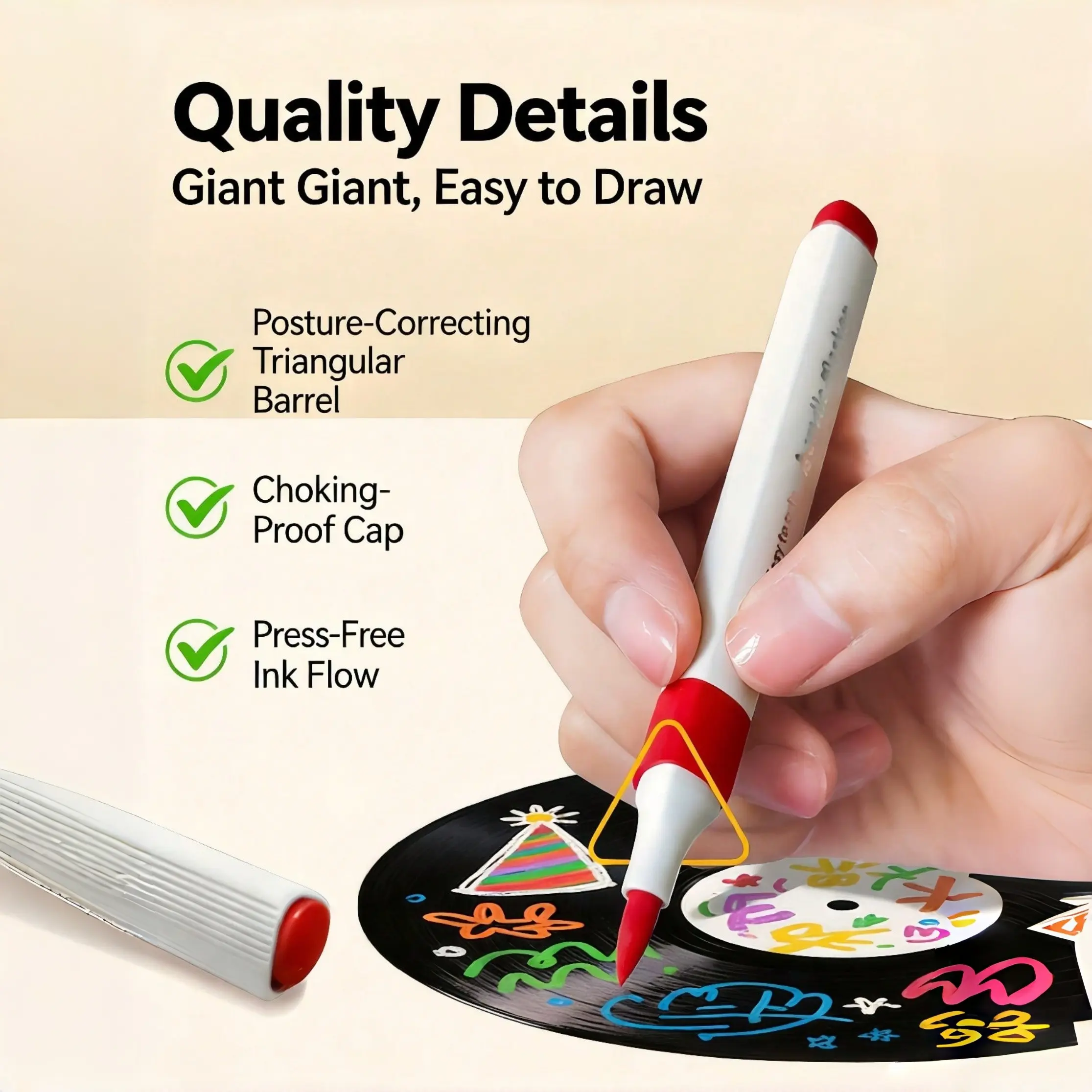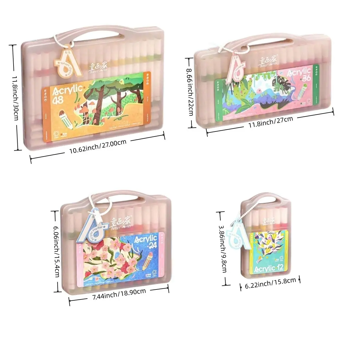 Set of 48/36/24 Color Acrylic Markers, Soft Tips, DIY, Layering, Water Washable, Strong Coverage, Ideal for Art Classes, Student Use