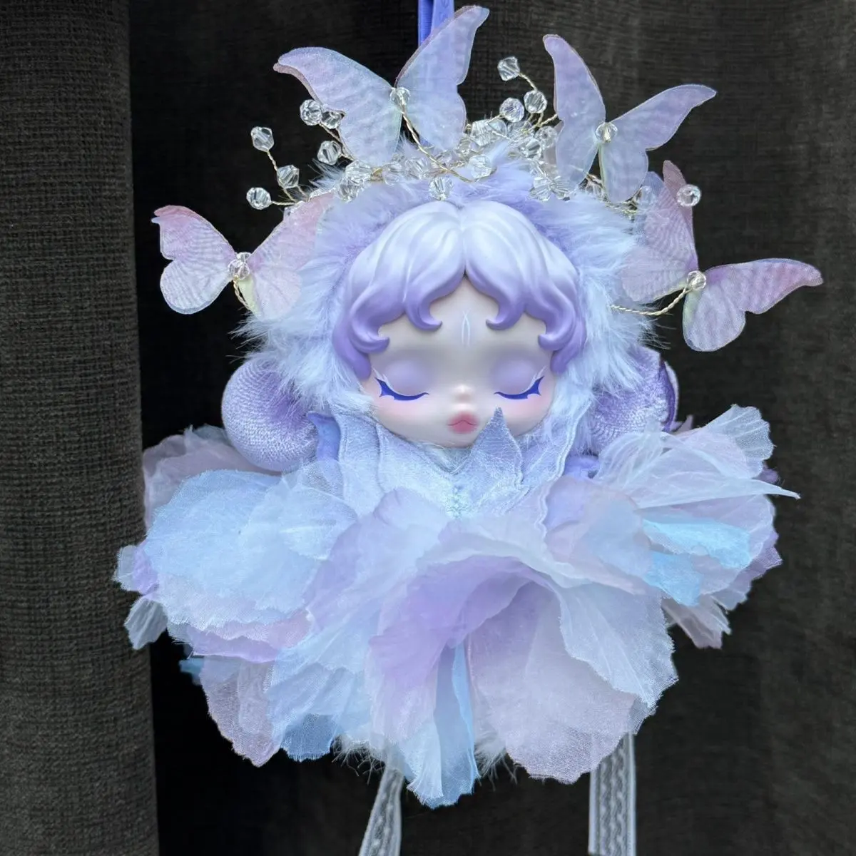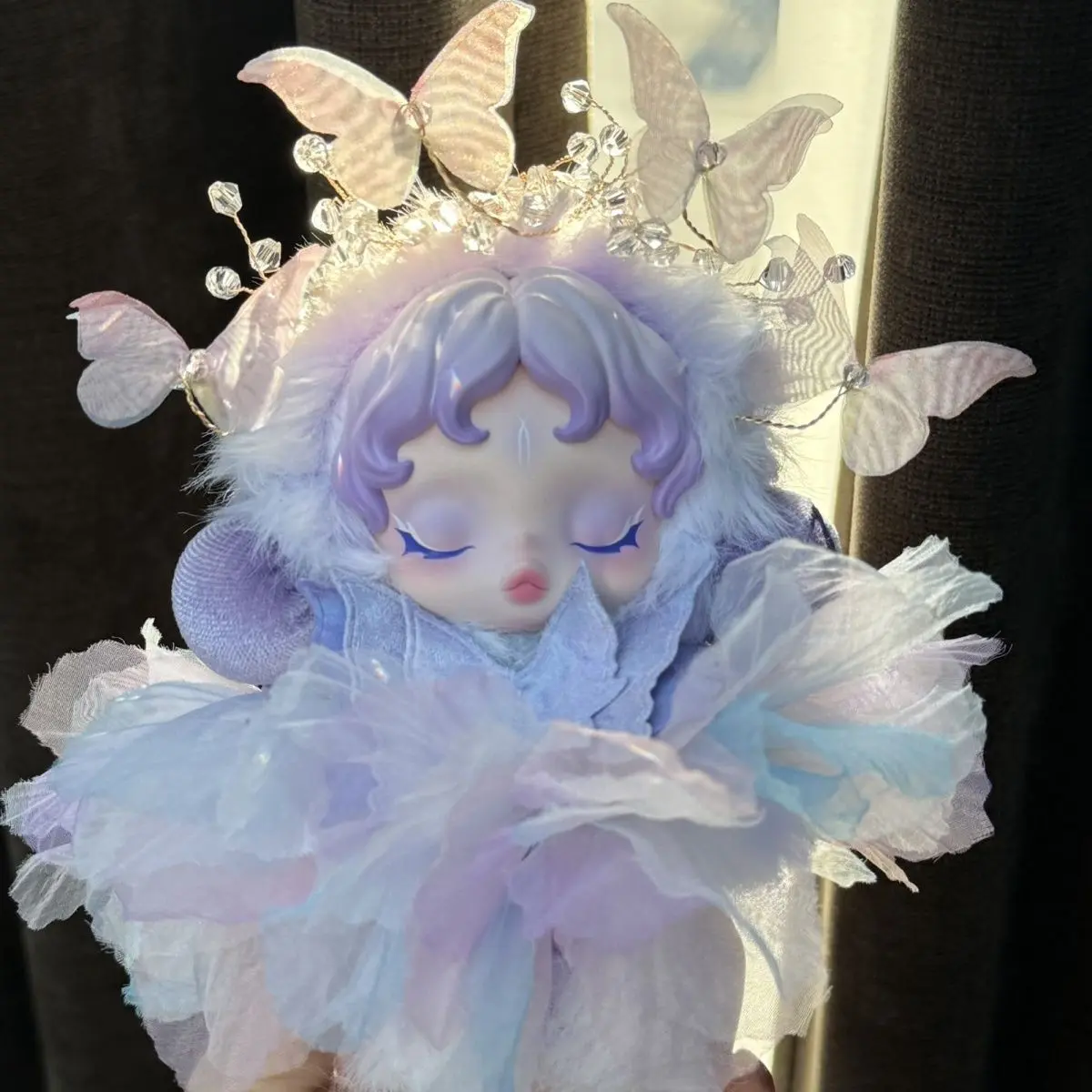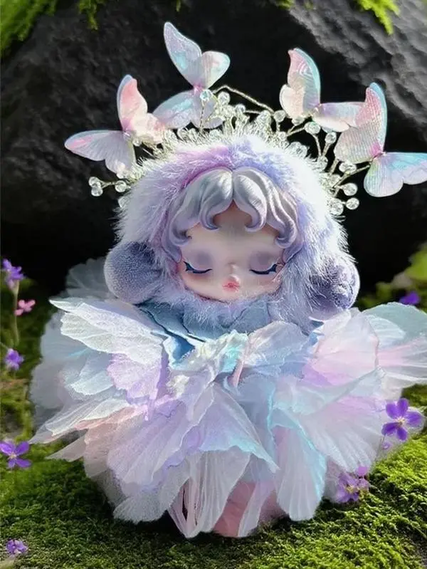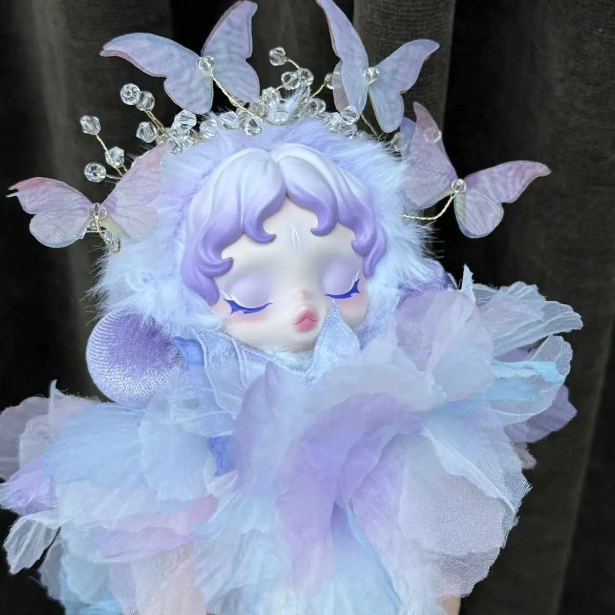 # Enchanted Butterfly Fairy Doll Outfit This dreamy lavender-blue fairy set is pure magic! The voluminous ruffled tulle skirt blooms like a cloud, with soft fluffy trim and delicate butterfly appliqué. The showstopping headpiece features sheer gradient butterflies, sparkling crystal beads, and a golden wire crown, perfect for your SKULLPANDA/17cm doll. Handmade with premium fabrics, it turns your doll into an ethereal forest fairy, full of whimsy and elegance. A must-have for any doll collector!