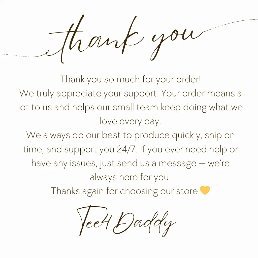 Thank you so much for choosing our store. Every order means a lot to us and motivates our team to continue creating high-quality products and providing the best service possible. If you have any questions, special requests, or need help with your order, please feel free to message us anytime. We’re always happy to help!
