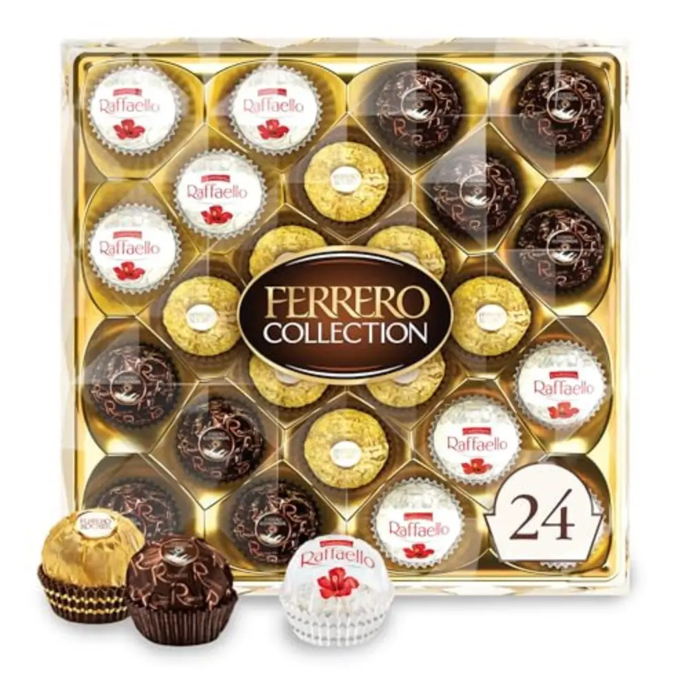 Gourmet Gift Box: Share the indulgence of Ferrero Collection with this 24-count box of individually wrapped confections. Perfect for Easter gifts, it includes hazelnut milk chocolate Ferrero Rocher, creamy coconut Raffaello, and rich dark chocolate Rondnoir. Each piece is expertly crafted with premium ingredients, delivering decadent taste.