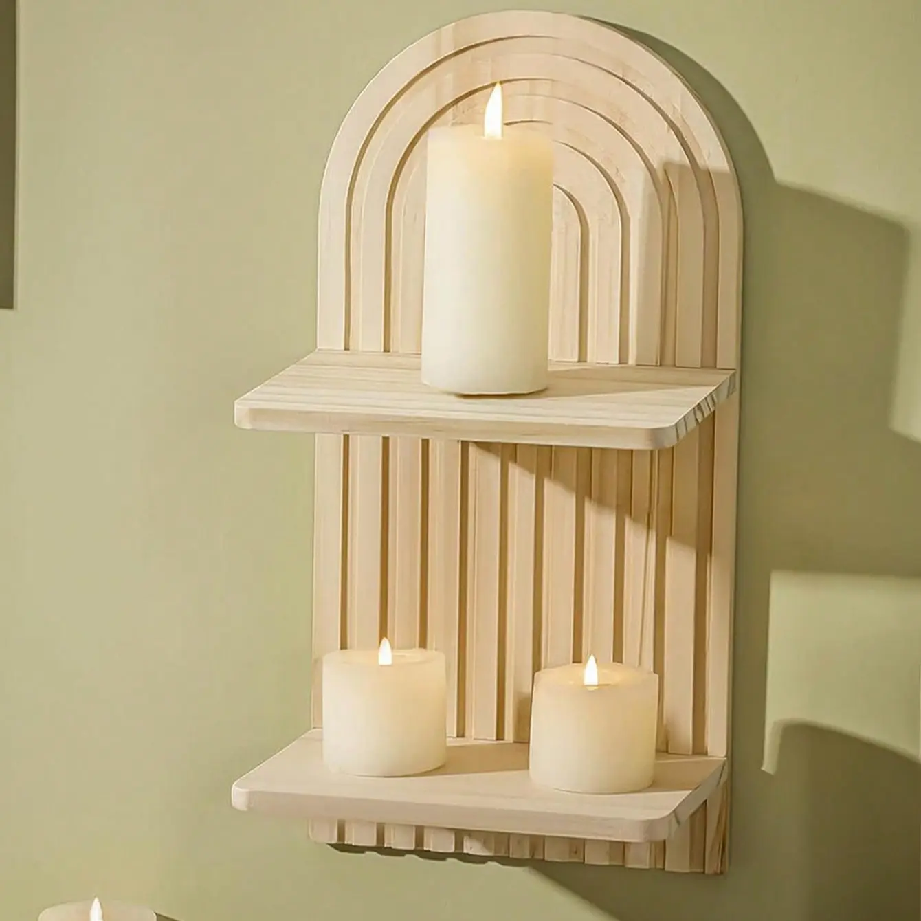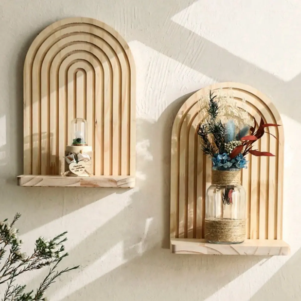 Bohemian Wall Shelf Decor, Floating Wooden Rack for Living Room Bedroom, Dual Layer Hanging Display Stand, Boho Style Storage Organizer