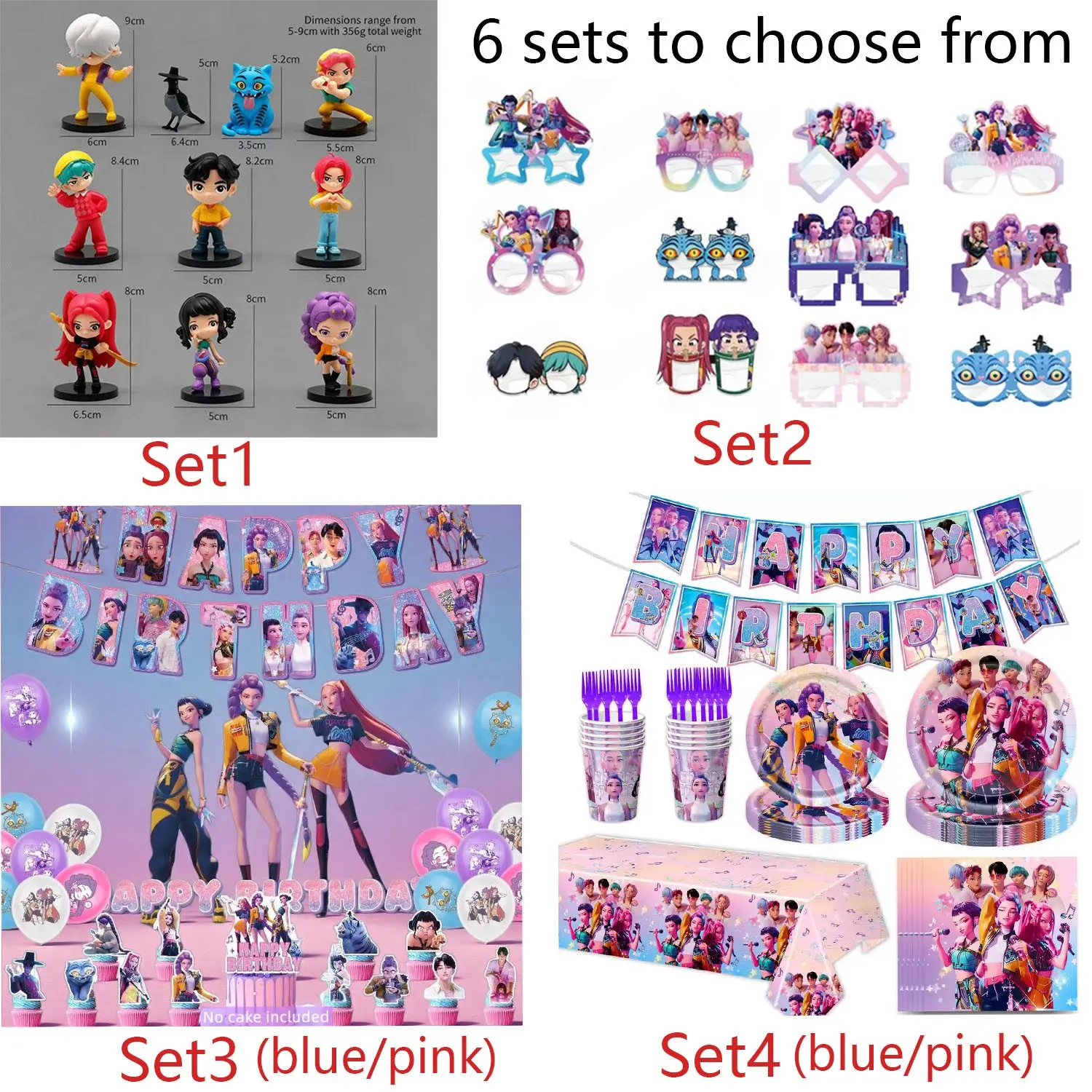 K-Pop Birthday Party Decoration Set Collection whimsical home decor,Kpop Anime Girls - Tablecloths, placemats, plates, cups, banners, forks, figurines, Backdrop, balloons, cake decorations, stickers, glasses and masks, K-Popbirthday party tunique decor