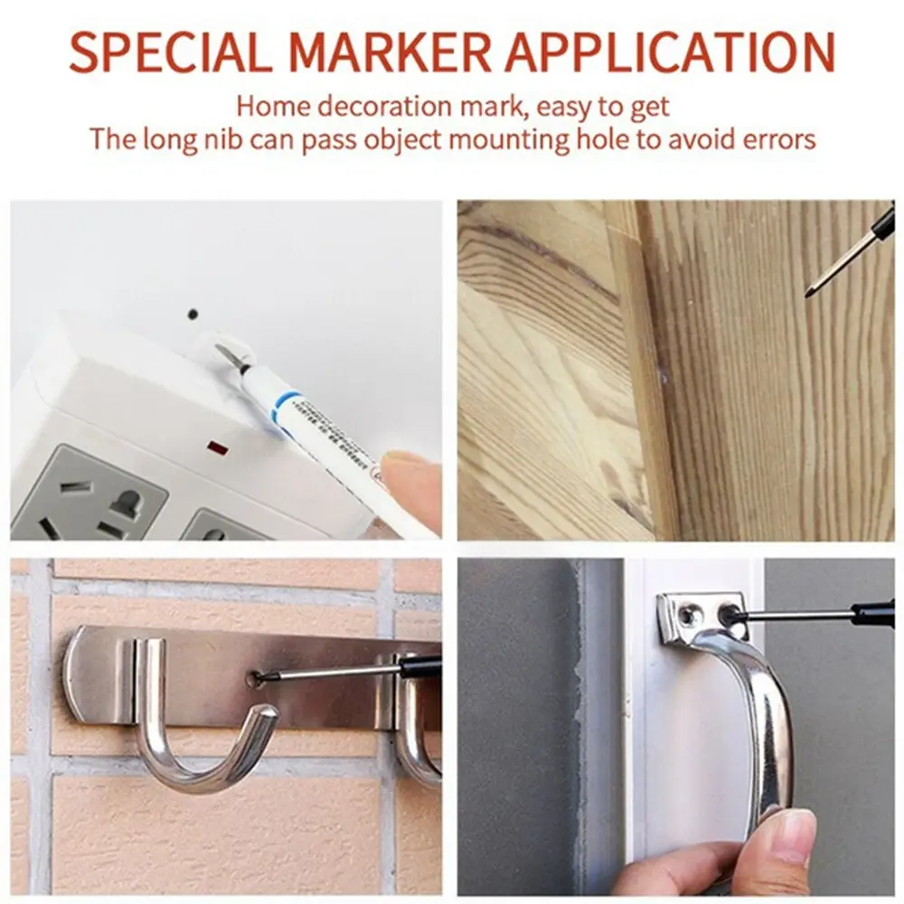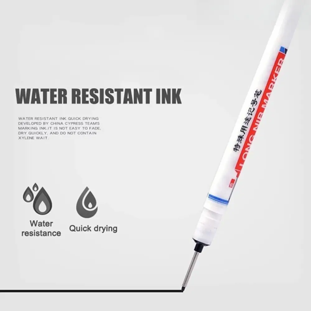 Industrial Waterproof Marker Pen, Long Head Deep Hole Design, Suitable for Metal Wood Glass Ceramic, Fade-Resistant Oil-Proof Cement Marking Tool