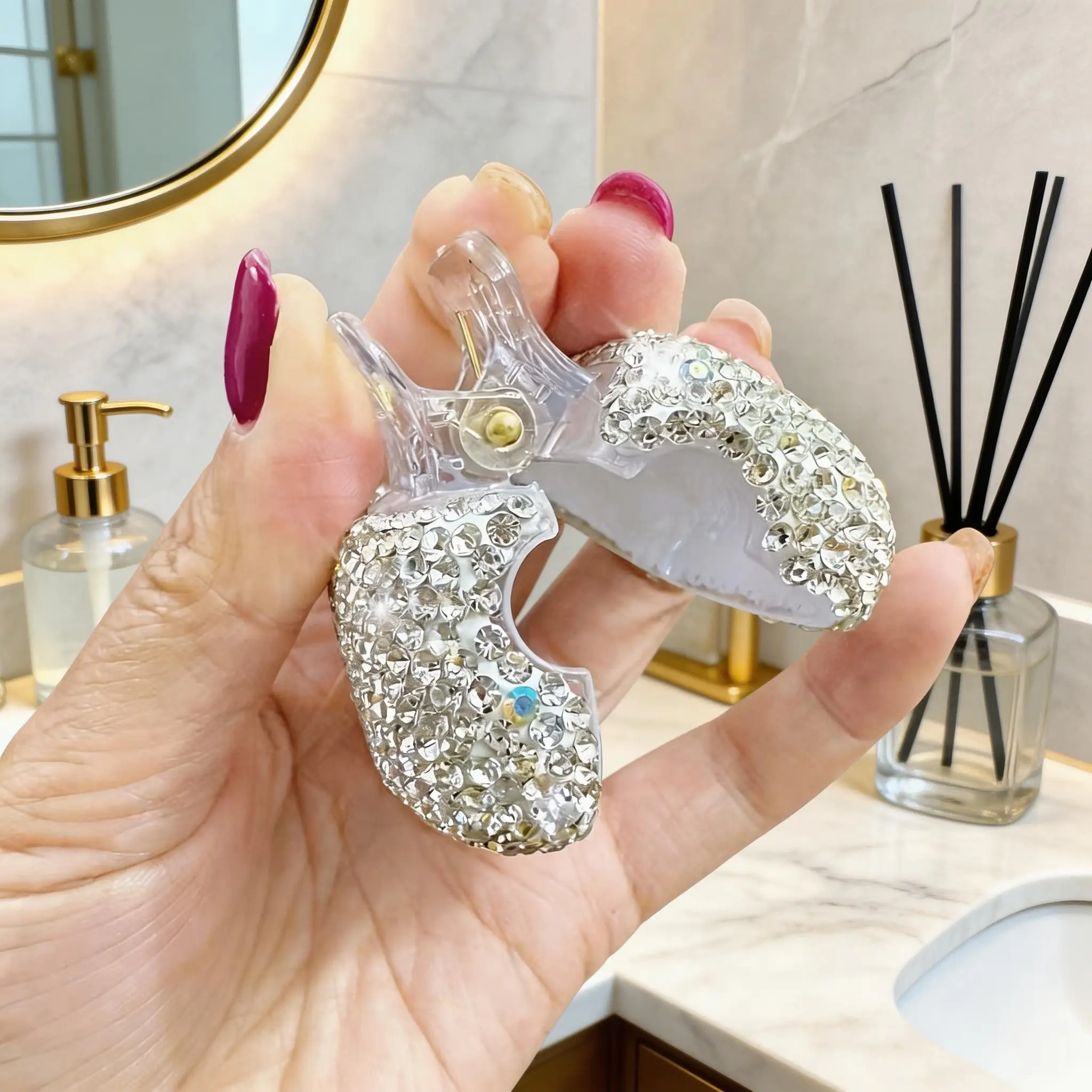 Beautiful and practical. The rhinestones are very sparkly, the height is adjustable, and it feels sturdy. Perfect for holding items and adding a touch of elegance to my space. Love it! ✨