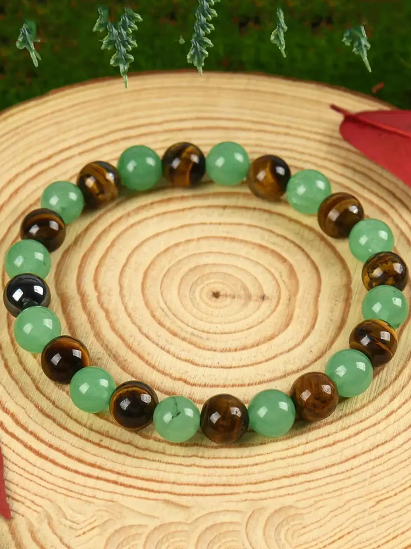 【Natural Stones】: Crafted with tiger eye and green aventurine, offering a luxurious and natural aesthetic.