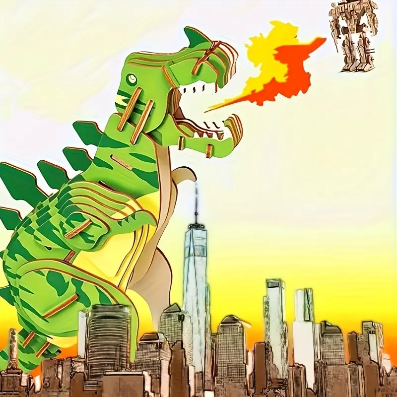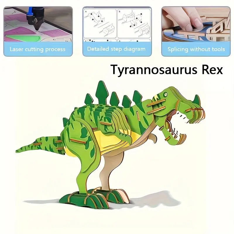 【Realistic Design】: This wooden puzzle dinosaur model offers a lifelike representation, perfect for educational purposes.