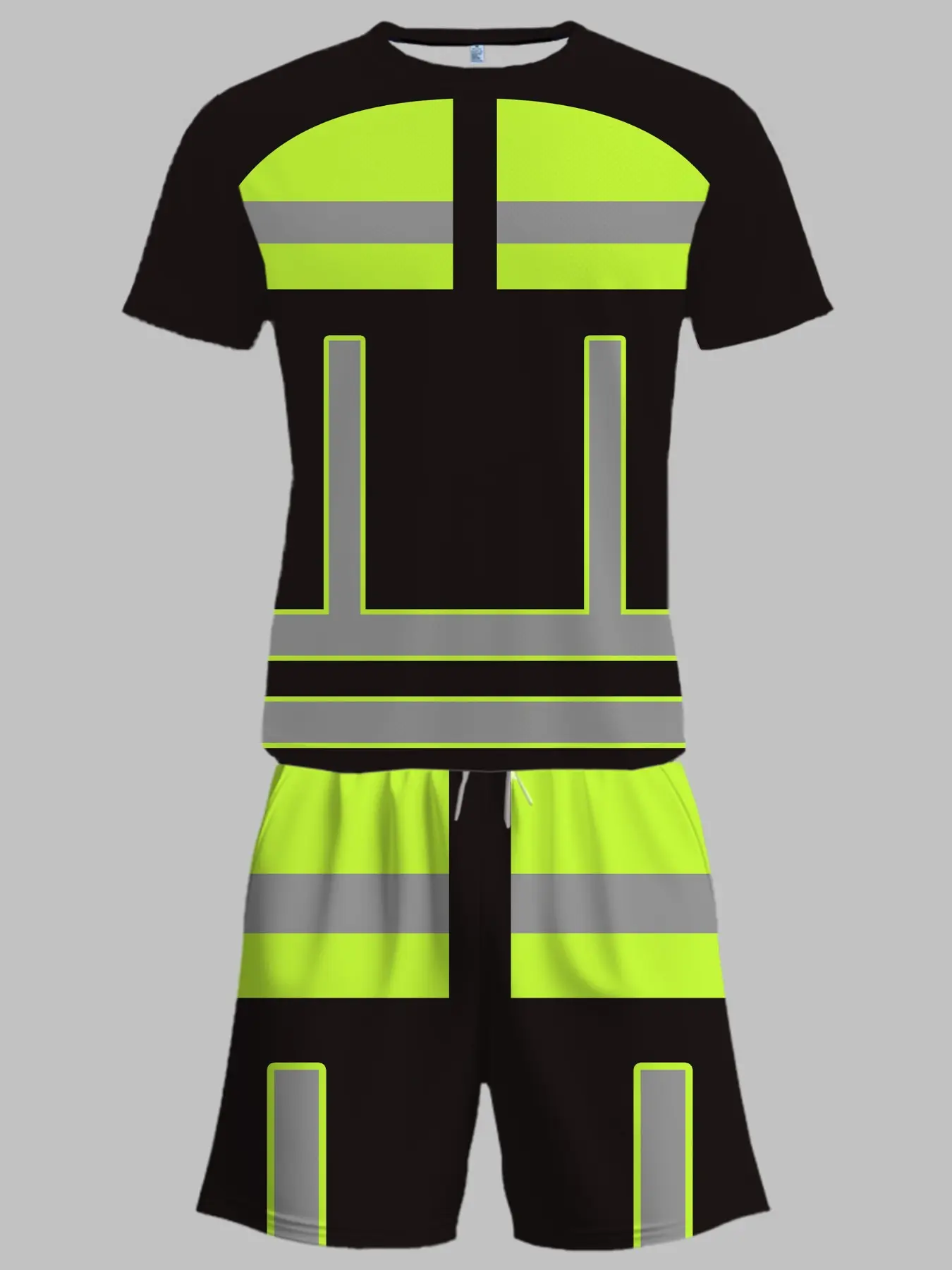Reflective Safety Workwear Set for Men, Summer Fluorescent Short Sleeve Shorts Two-Piece Kit, Pocket Drawstring Waist, Ideal Gift