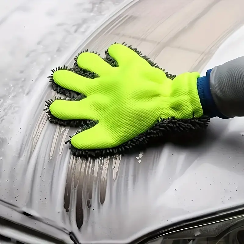 【Double-Sided Feature】: This glove features a unique double-sided design, allowing for efficient cleaning on both sides to maximize your washing effort.