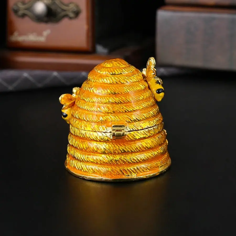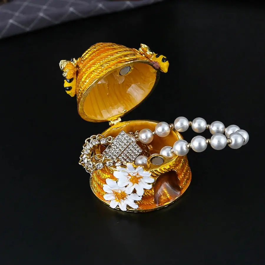 Elegant Beehive Jewelry Box, Hand-Painted Enamel Storage Case, Organize Necklaces, Dressing Table Mess, Trendy Country Style Garden Decor