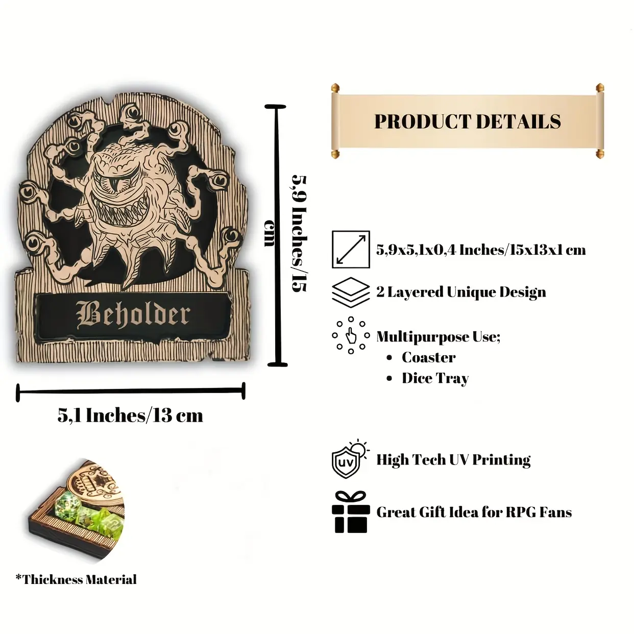 5. Role-Playing Game Dice Tray Coaster Set, Beholder Class Icons Cute Coasters, Fantasy Home Decor, Kitchen Gift, No Dice Included