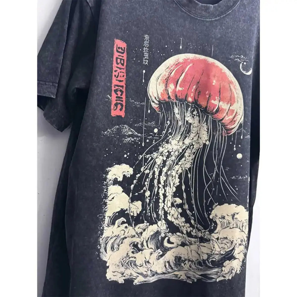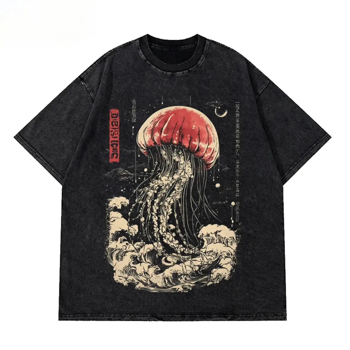 This mens vintage oversize cotton T-shirt features a vibrant colorful jellyfish print, blending Japanese Harajuku street style with casual comfort. Made of soft, breathable cotton fabric, it offers a loose, relaxed fit for all-day wear. The eye-catching jellyfish pattern brings a fun, artistic touch, while the classic O-neck design keeps it simple and versatile. Perfect for daily outings, beach trips, swimming breaks, and street fashion looks, it pairs easily with jeans, shorts, and casual pants to create a trendy, youthful, and all-match summer style.Material: High-quality