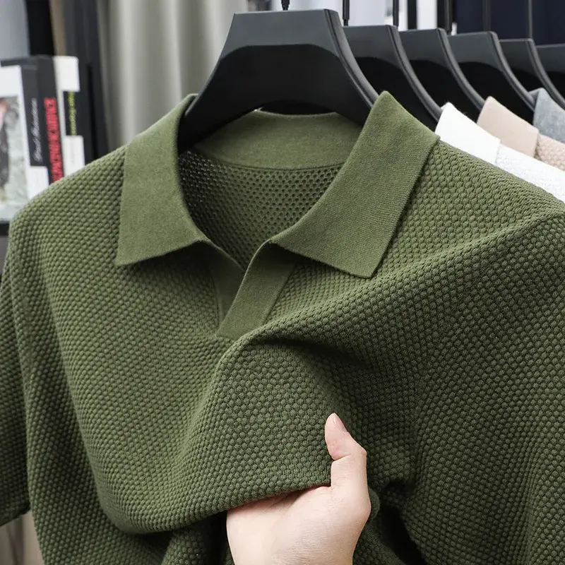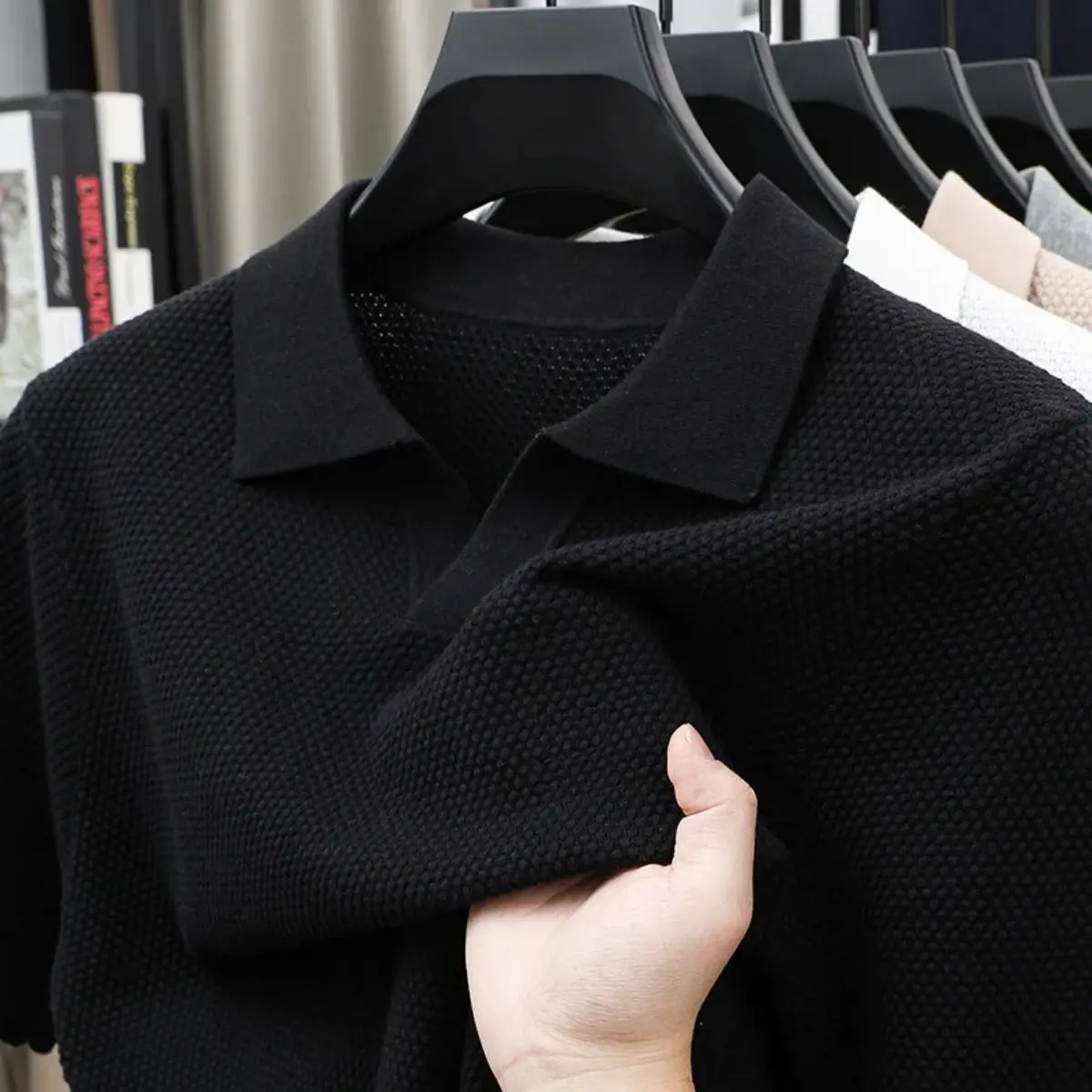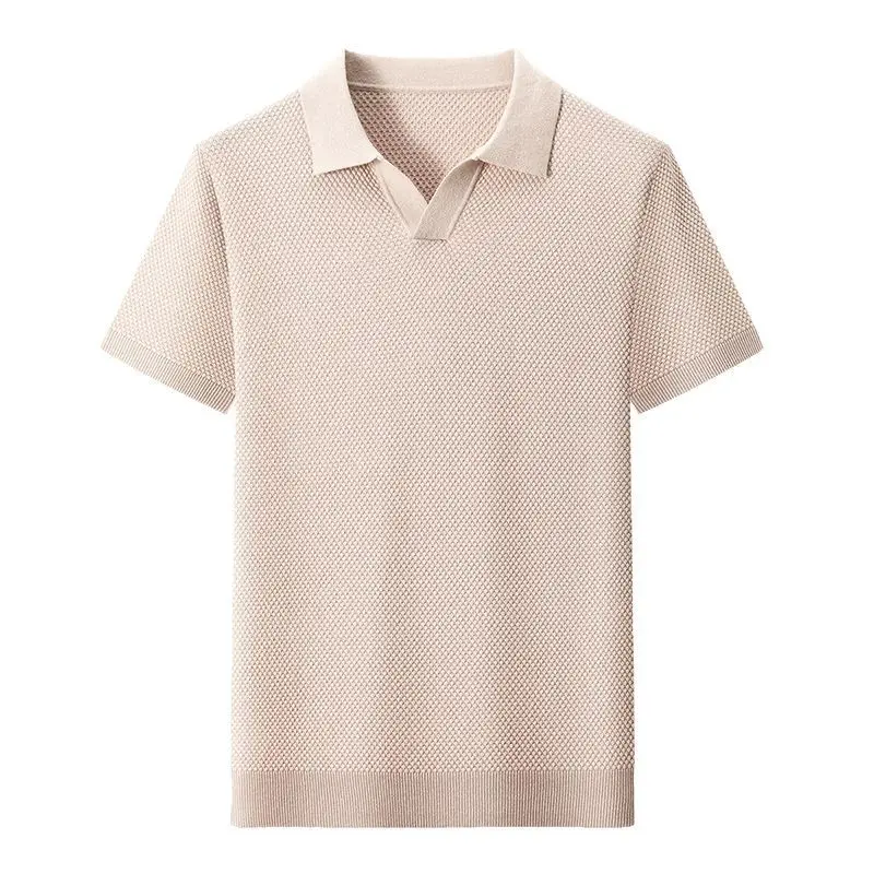 This new summer mens V-neck polo shirt features a stylish seagull collar and distinctive pineapple knit texture, combining breathable lightweight fabric with a modern slim fit for a fresh and fashionable warm-weather look. The unique pineapple knit design enhances ventilation and comfort while adding a subtle textured detail, and the elegant seagull collar paired with a clean V-neck cut creates a refined yet casual appearance suitable for daily outings, streetwear, vacations, and casual gatherings. Easy to match with jeans, shorts, casual pants, and chinos, this polo shirt delivers a trendy, lightweight, and versatile outfit ideal for hot summer days with a stylish and distinctive aesthetic.Material: High-quality