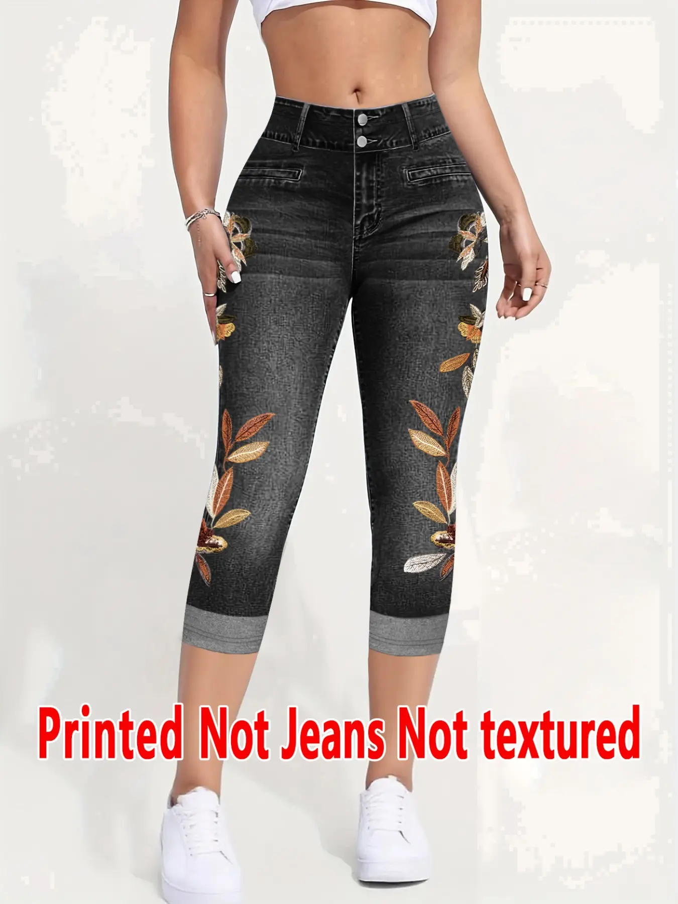 Women's Printed Skinny Pants Non-Denim Fabric, Ladies Seven-Inch Print Jeans-Like Bottoms, All Seasons Fashion