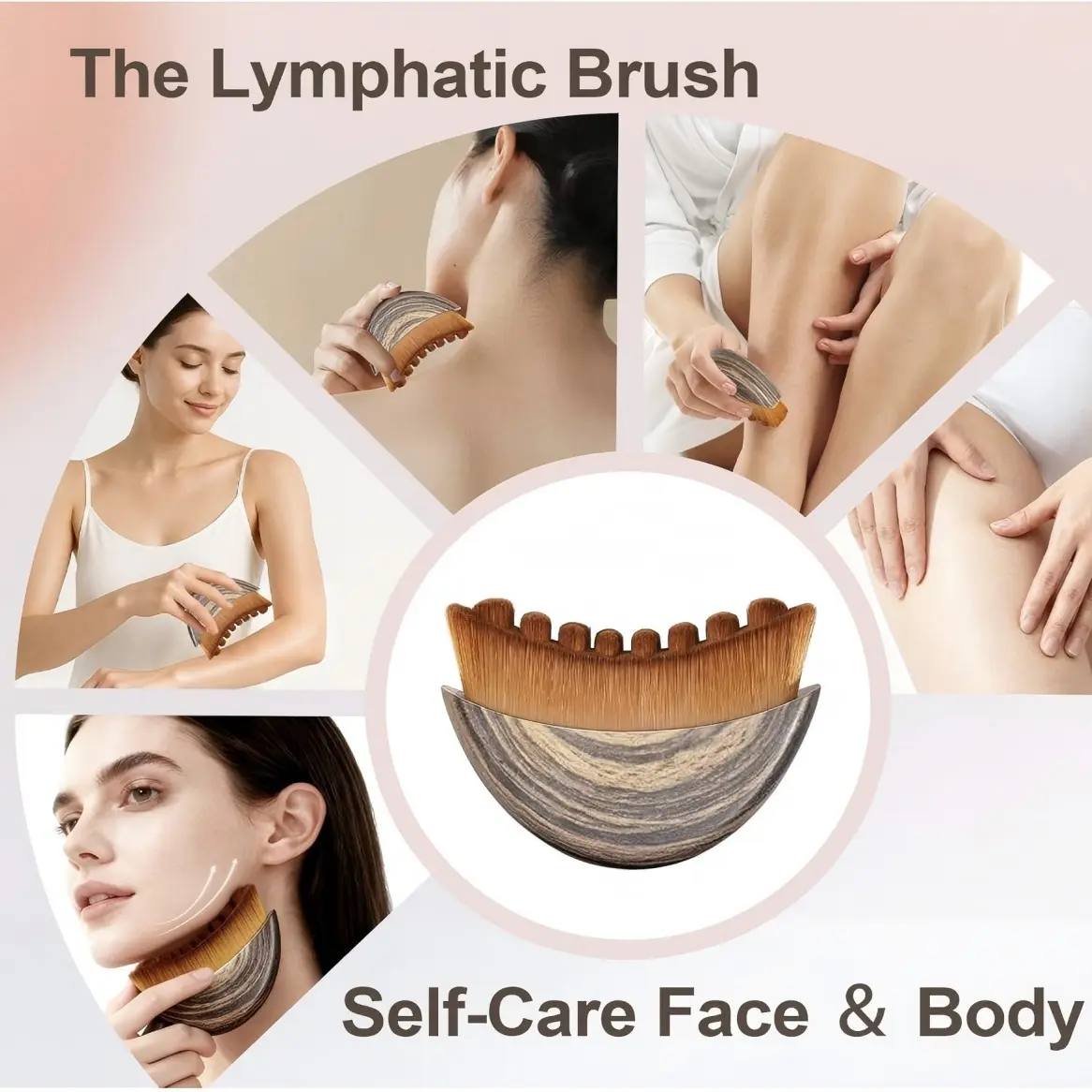 1 Piece Lymph contour facial brush, manual lymphatic drainage massager, natural makeup brush with durable soft bristles, low-allergenic ergonomic facial cleansing brush (for shaping facial contours) Valentine's Day, Mother's Day, Teacher's Day gift