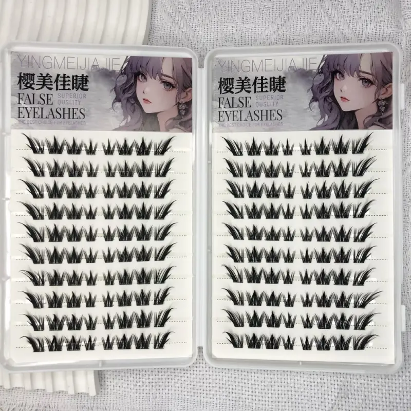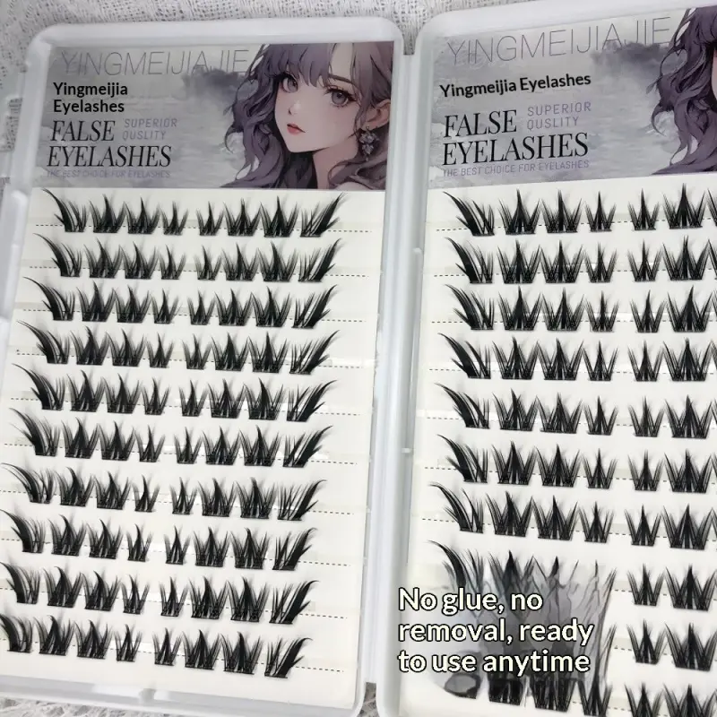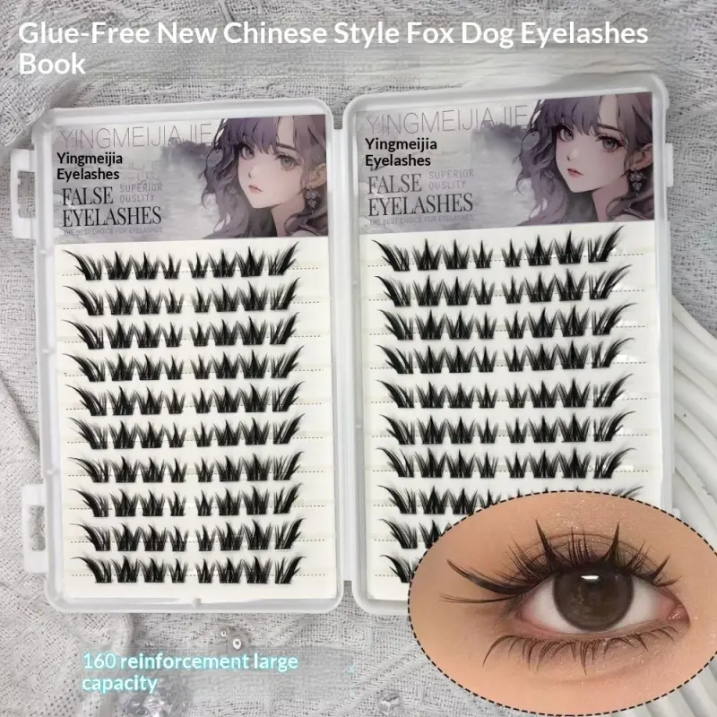 Large Capacity Self-Adhesive Glueless False Eyelashes Fluffy Winged Fox Eye Natural Volume Lashes Reusable Easy Removal 11-13mm
