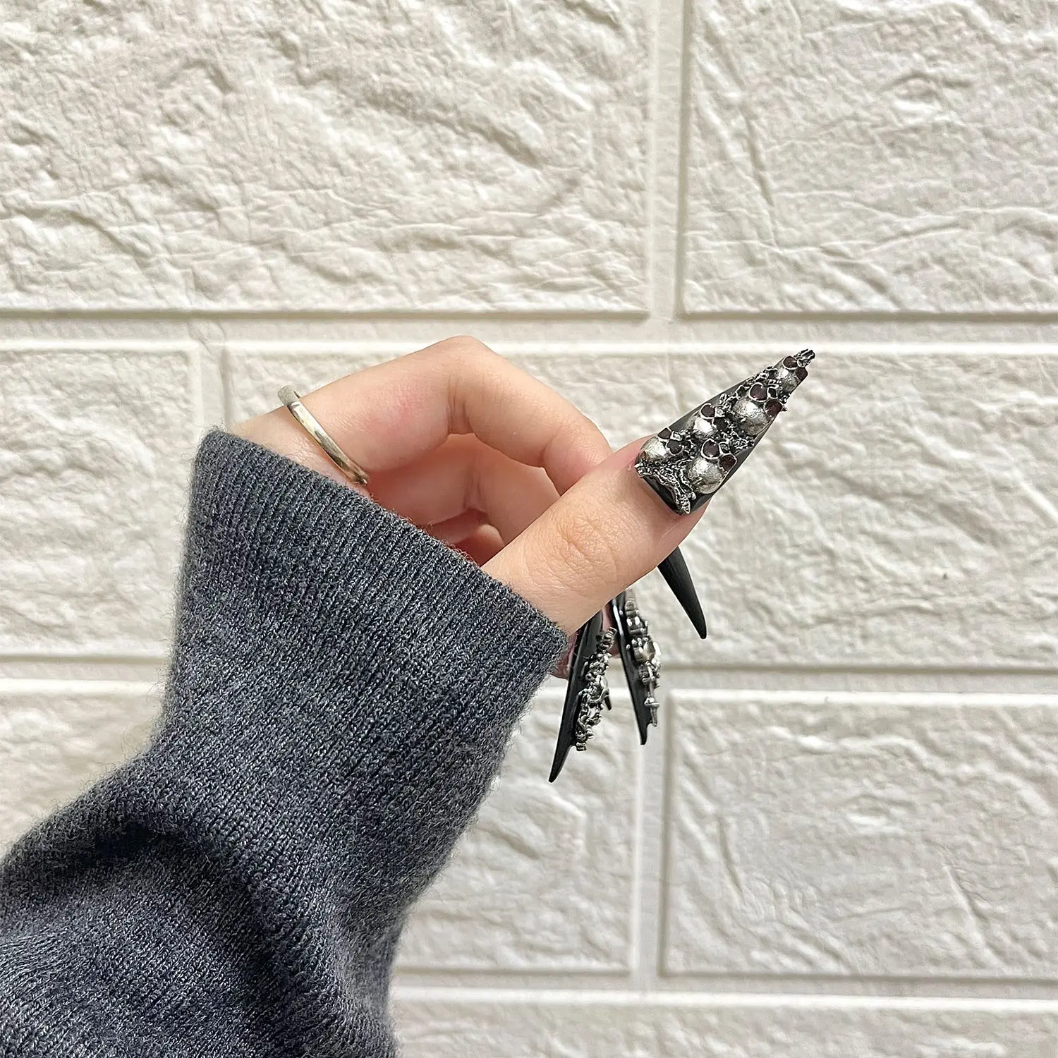 【3D Silver Skull】: Unique 3D silver skull design adds a gothic touch, perfect for Halloween-themed nail art.