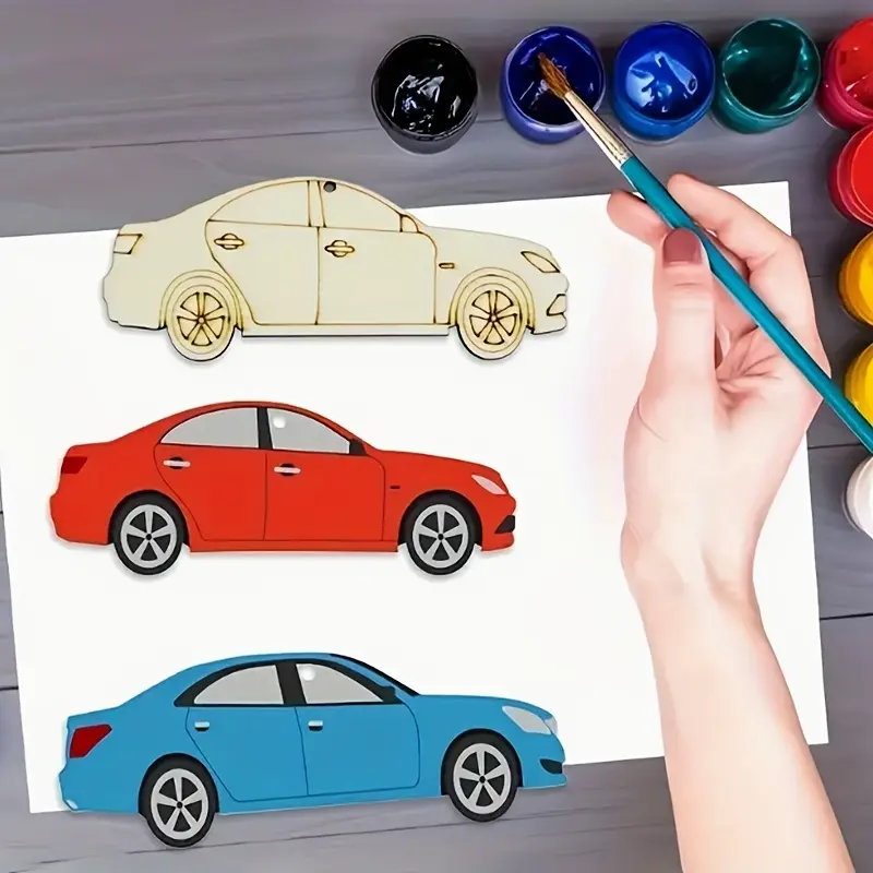 5. 10 wooden car, sports car, and racing car shaped pieces for DIY painting and graffiti crafts, wooden hanging ornaments, decorations for holidays, weddings, family parties, and birthdays