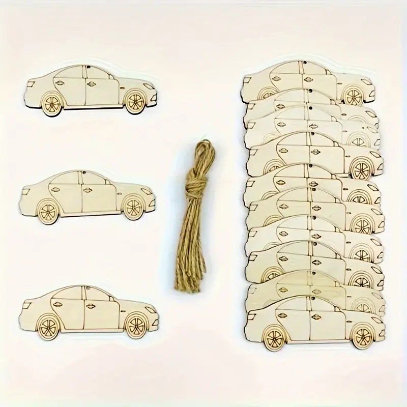 10 wooden car, sports car, and racing car shaped pieces for DIY painting and graffiti crafts, wooden hanging ornaments, decorations for holidays, weddings, family parties, and birthdays