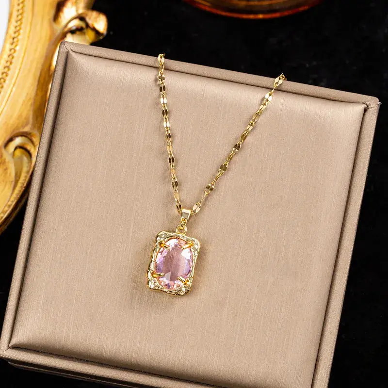 Featuring a delicate necklace and matching earrings with radiant rectangle-cut zircon stones, this set adds a subtle feminine shine to any look.