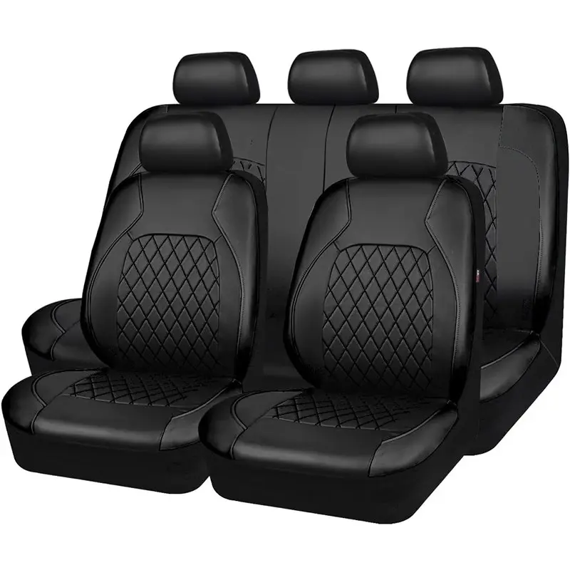 ·PREMIUM FAUX LEATHER MADE: This black universal car seat covers full set is very comfortable, wear-resistant, waterproof and breathable, keeping your car seat from spills ,stains, dirt & spot. If you have a dog it will protect seat from hairs or dirty feet