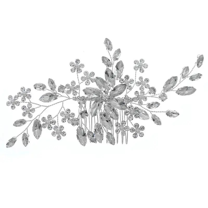 Delicately crafted with shimmering rhinestones arranged in a blooming floral design, the Aurélie Crystal Bloom Hair Comb captures romantic sophistication.