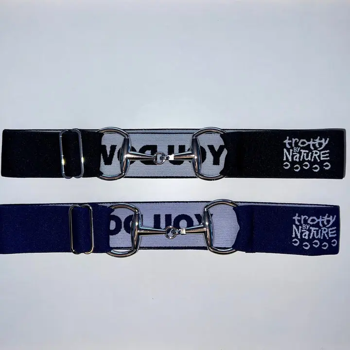 2" stretchy elastic fabric Stainless Steel snaffle bit clasp One size fits most Available in Navy or Black