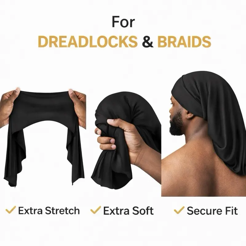 Upgrade your wave game with this XL Dreadlock Durag Cap designed for braids, dreads, and long hair.