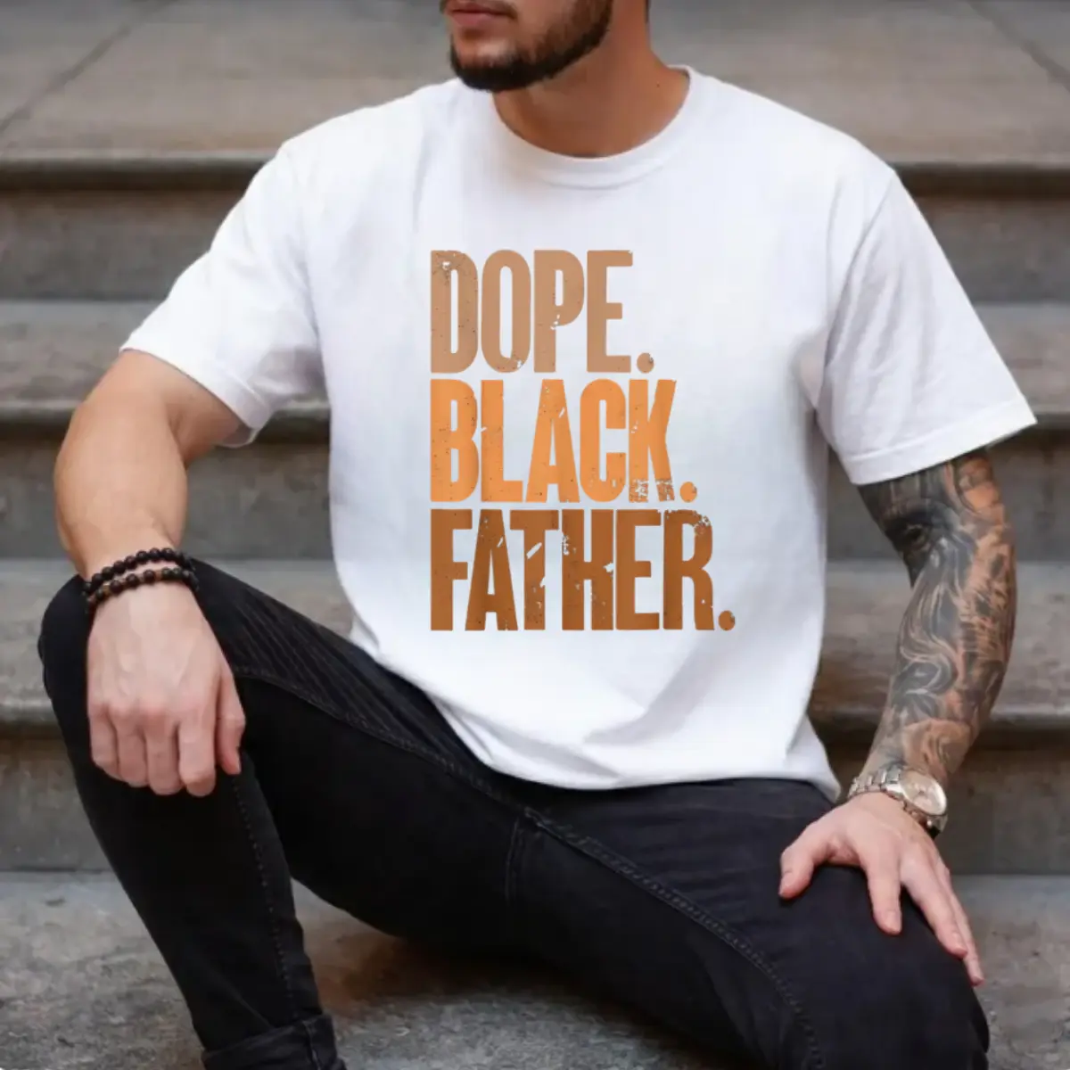 5. Men Gifts Black Dad Dope Black Father Fathers Day T-Shirt Cotton Crew Neck Short Sleeve Graphic Design for Casual Wear