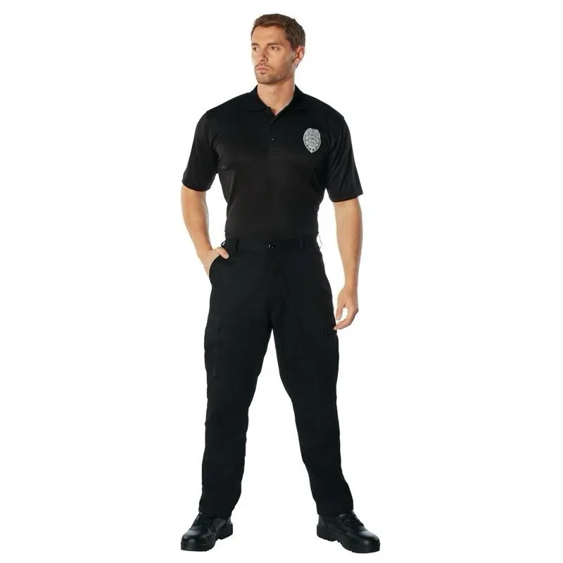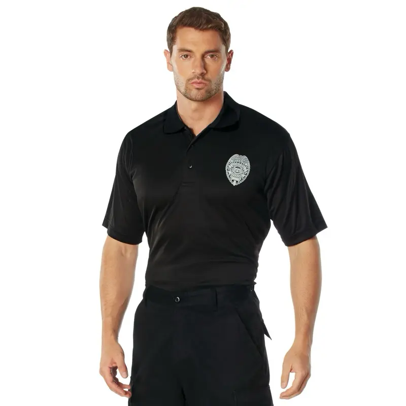·Leave the badge at home with Rothco's Moisture Wicking Security Polo with Printed Badge. This polo features a badge emblem printed directly on the front, eliminating the need for a badge pin. Made from moisture-wicking polyester performance material, it keeps the body cool, dry, and comfortable. "Security" is also printed on the back, making it the perfect uniform shirt for security and public safety personnel.
