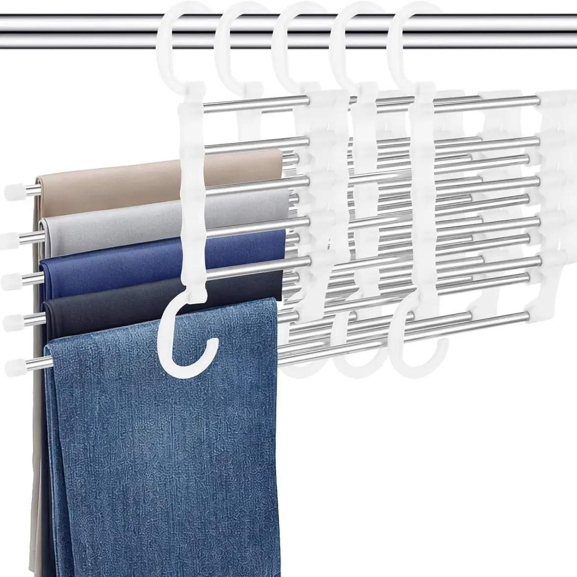 5. 1 multi-layer pants rack, plastic and stainless steel storage rack, saving space for organizing wardrobes, wardrobes, bedrooms, suitable for pants, jeans, scarves