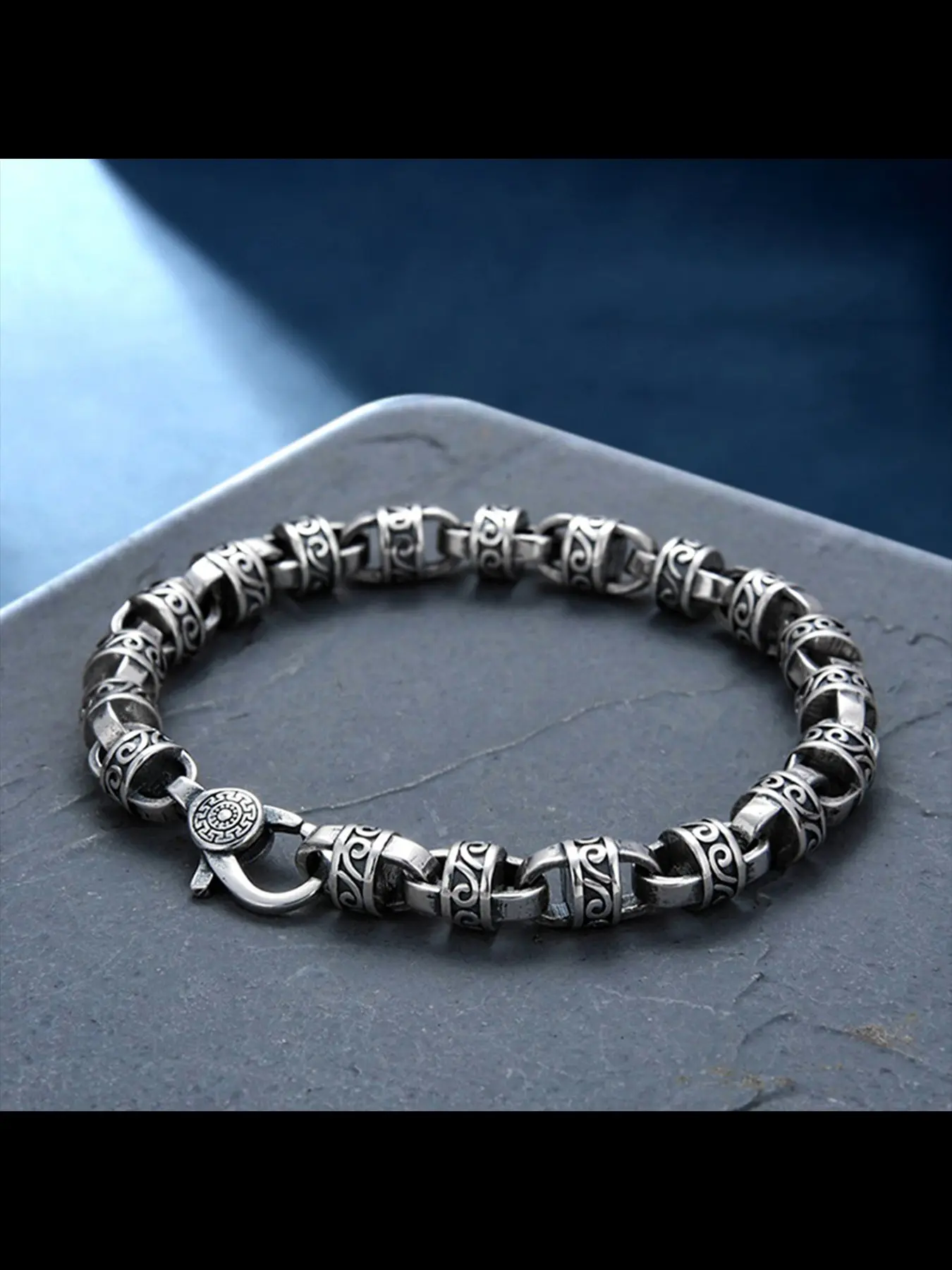 Men's Cuban Link Bracelet Vintage Birthday Gift Handmade Luxury Tangram Texture, Casual Ethnic Pattern Wristband for All Seasons